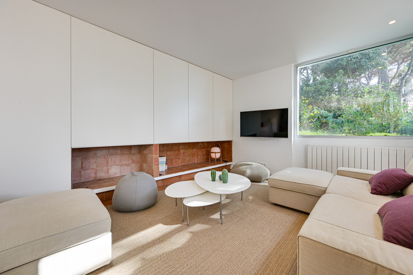 - Ruime woonkamer met Smart TV en directe toegang tot het zwembad