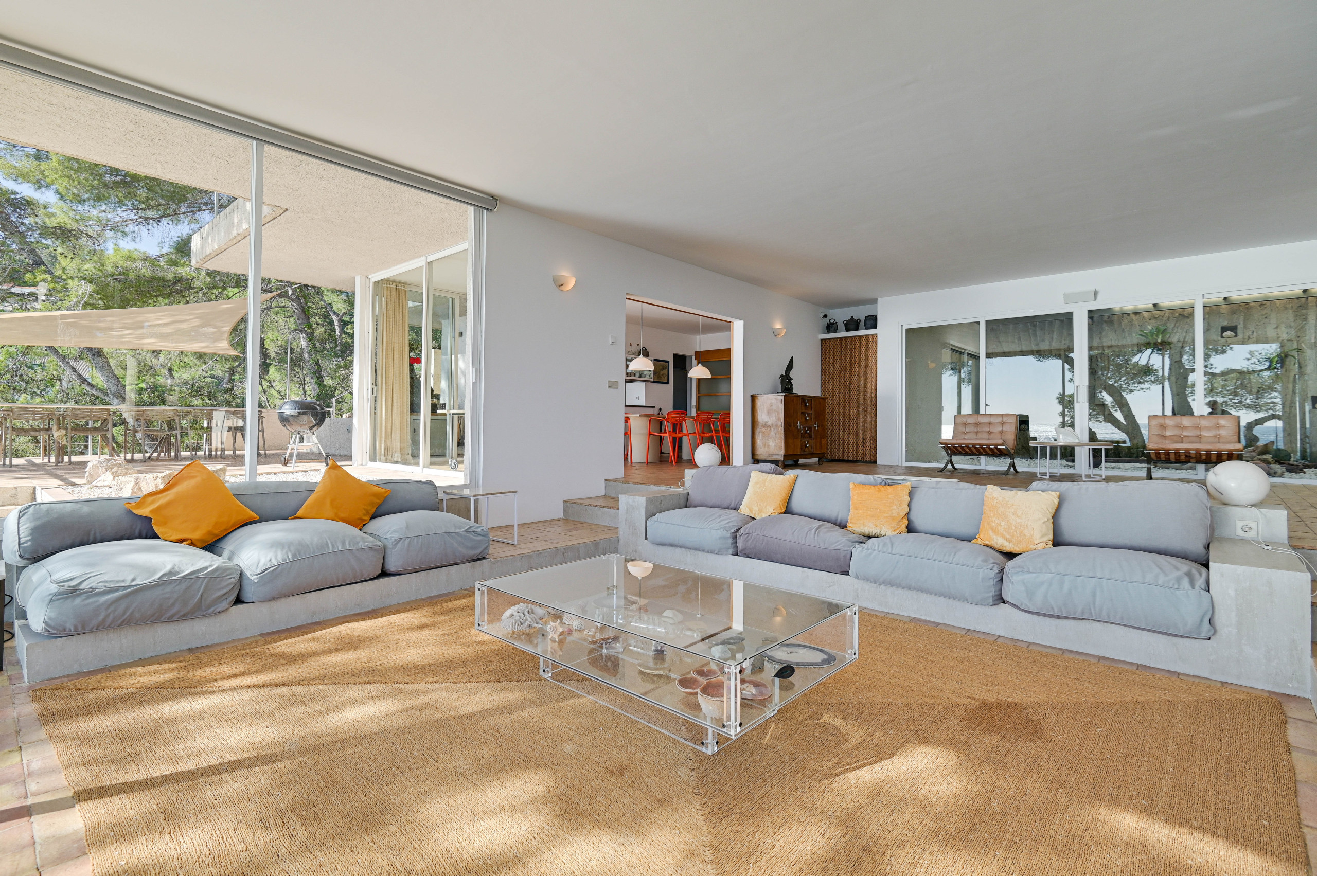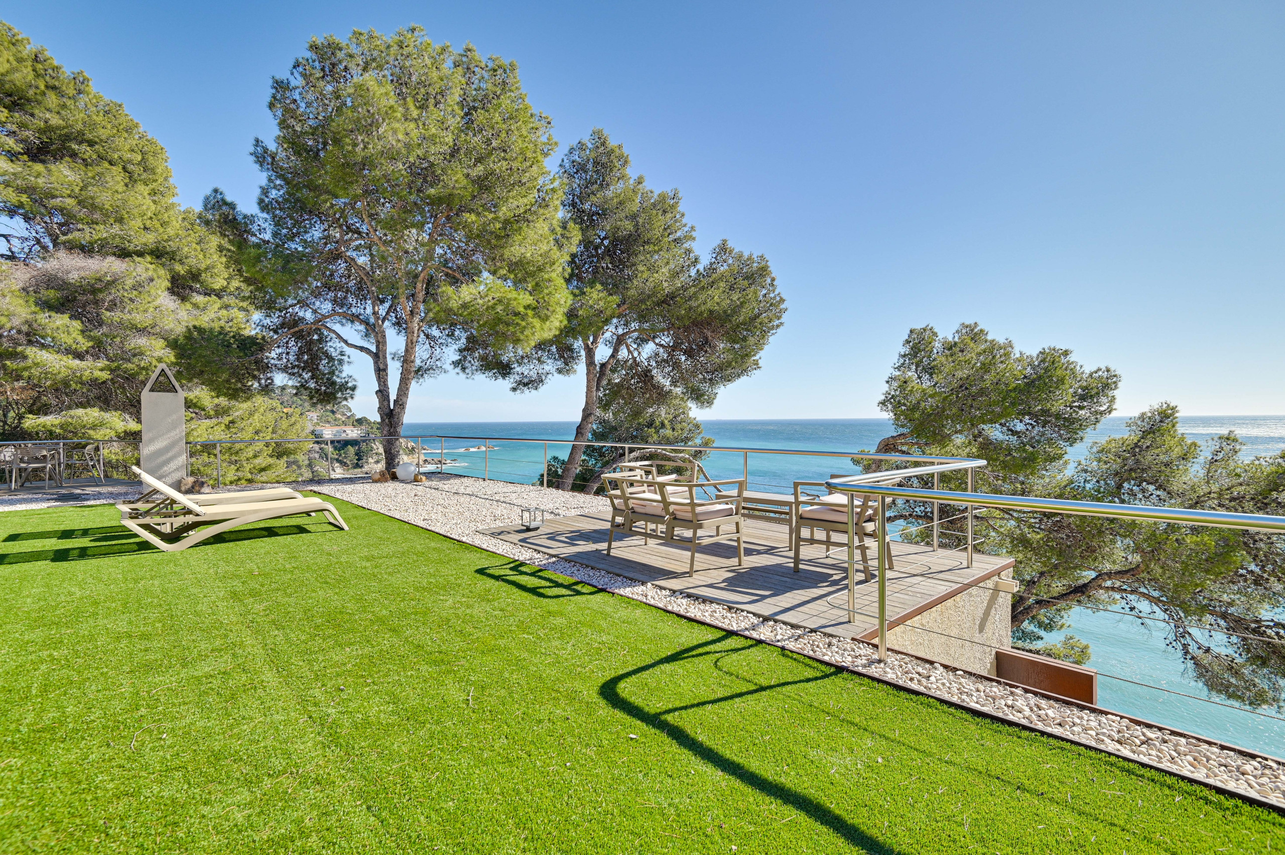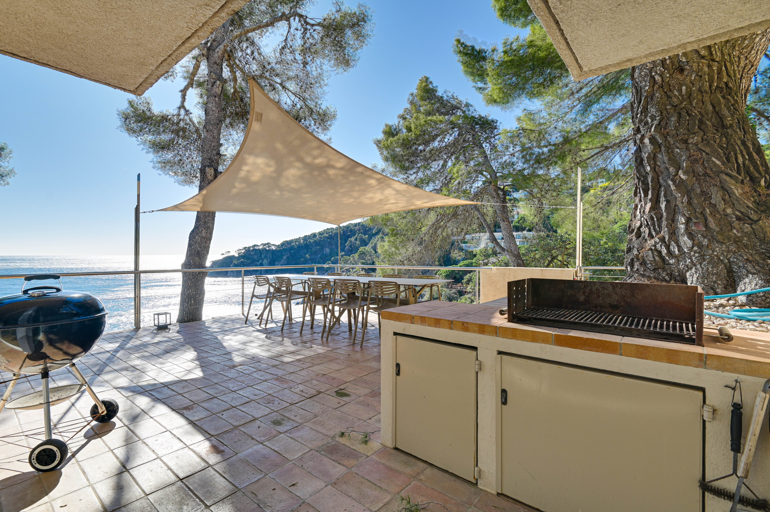 De villa biedt adembenemende 360°-uitzichten, met het strand aan beide zijden en panoramisch zicht op de Costa Brava, inclusief kristalhelder water, rotsachtige baaien en pijnboombossen. Het is ook een van de weinige villa’s met privétoegang tot het strand—daal gewoon de trap vanaf het terras af en je staat met je voeten in het zand!