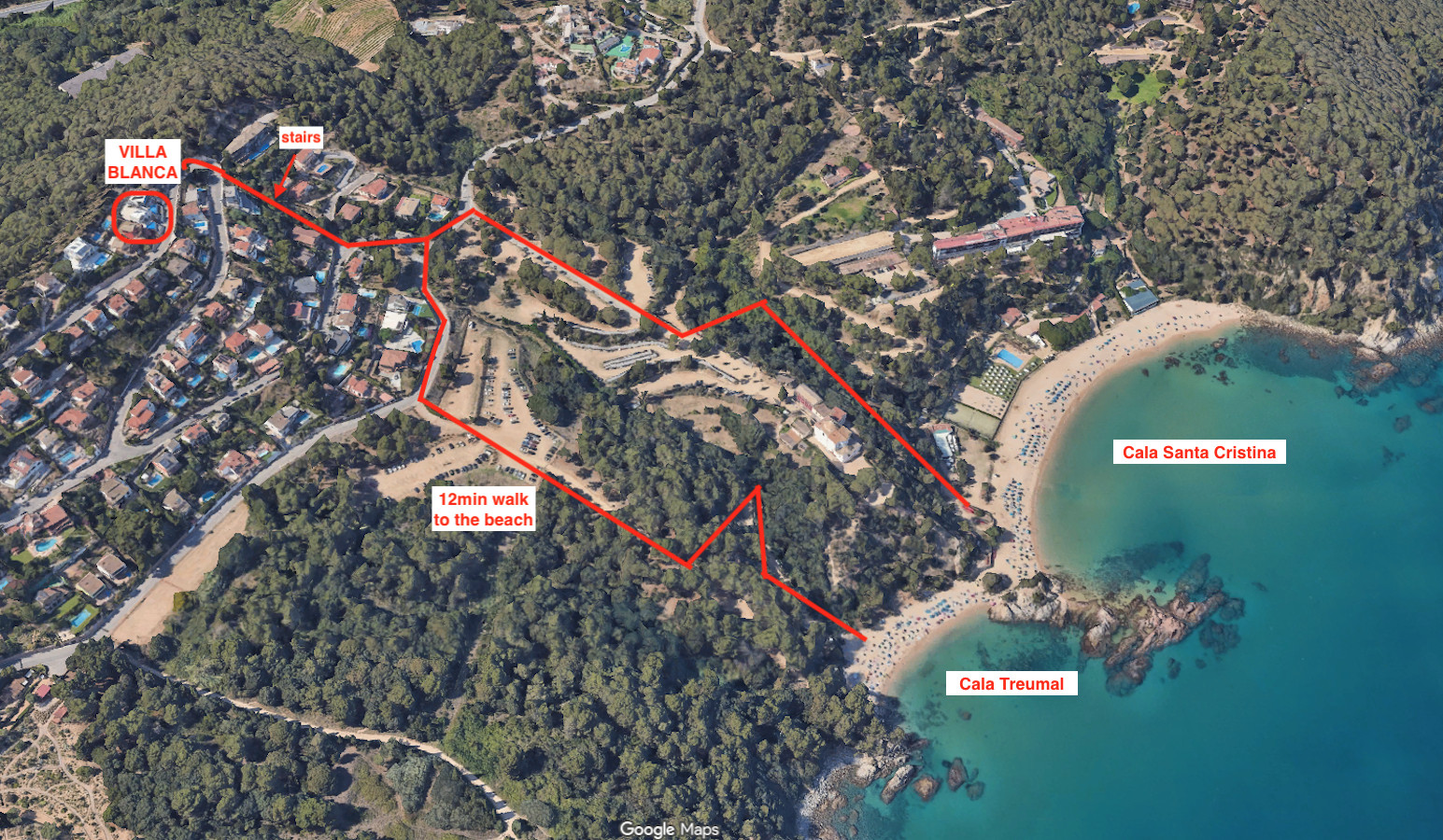 Las hermosas playas de Cala Santa Cristina y Cala Treumal están a solo 10 minutos a pie (15 minutos de vuelta).