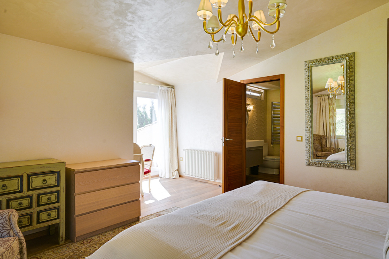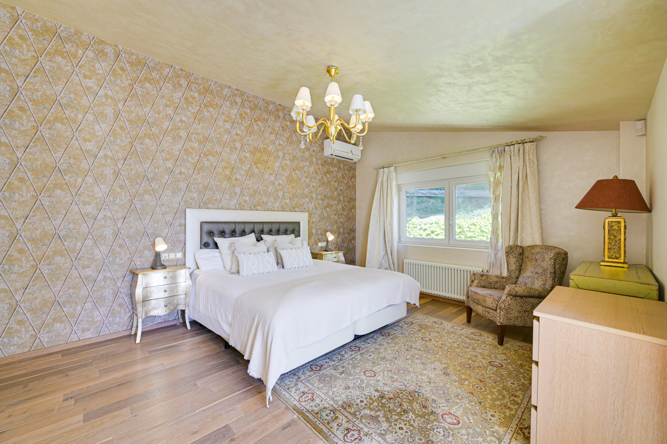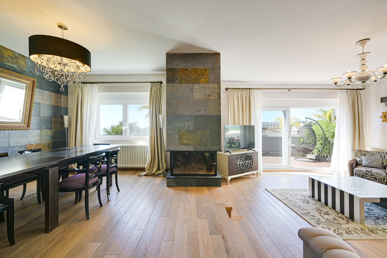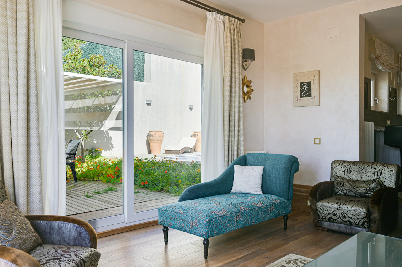 La villa ha sido decorada con mucho gusto, utilizando materiales de alta calidad, como suelos de madera y muebles de alta gama.