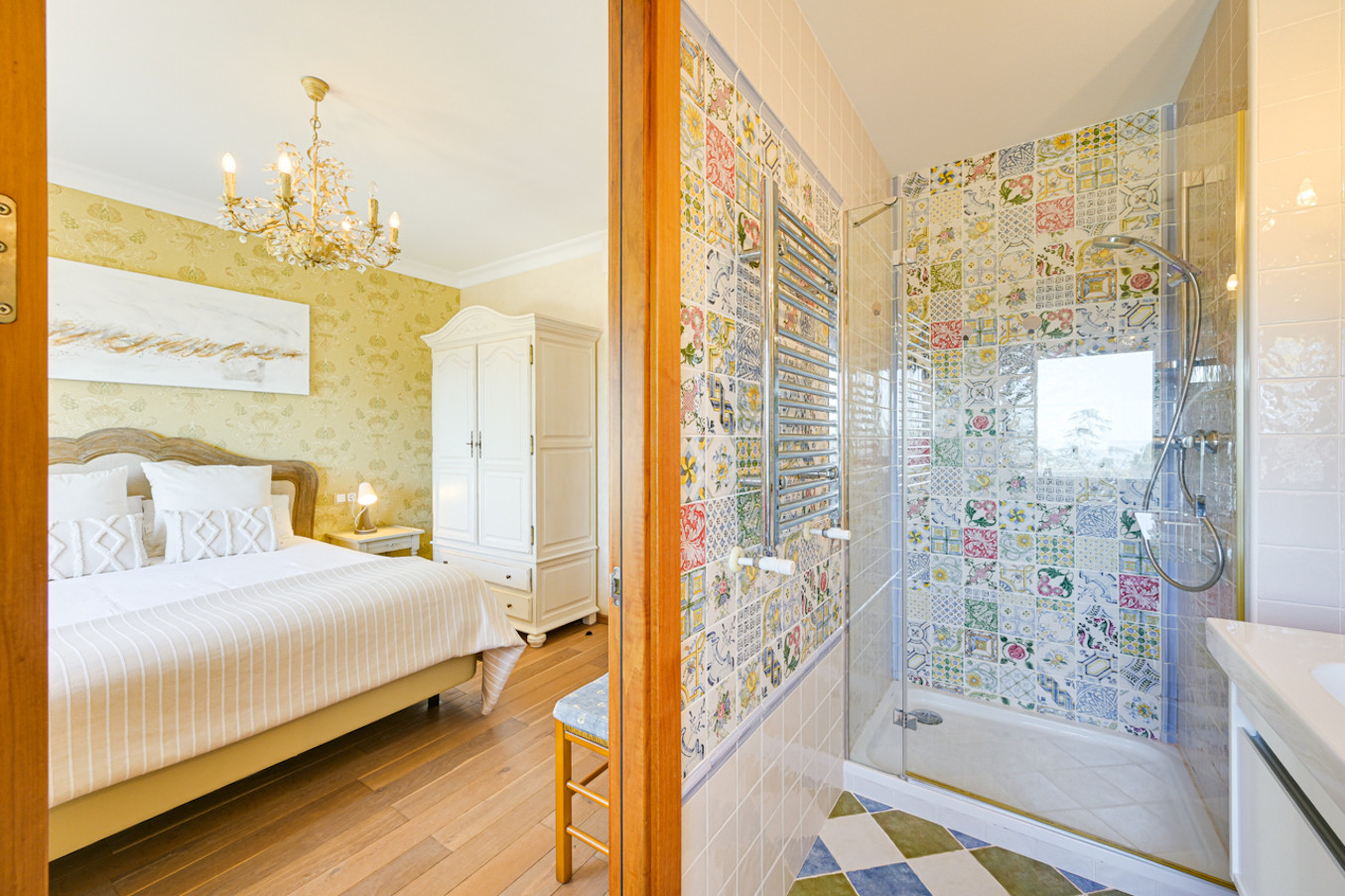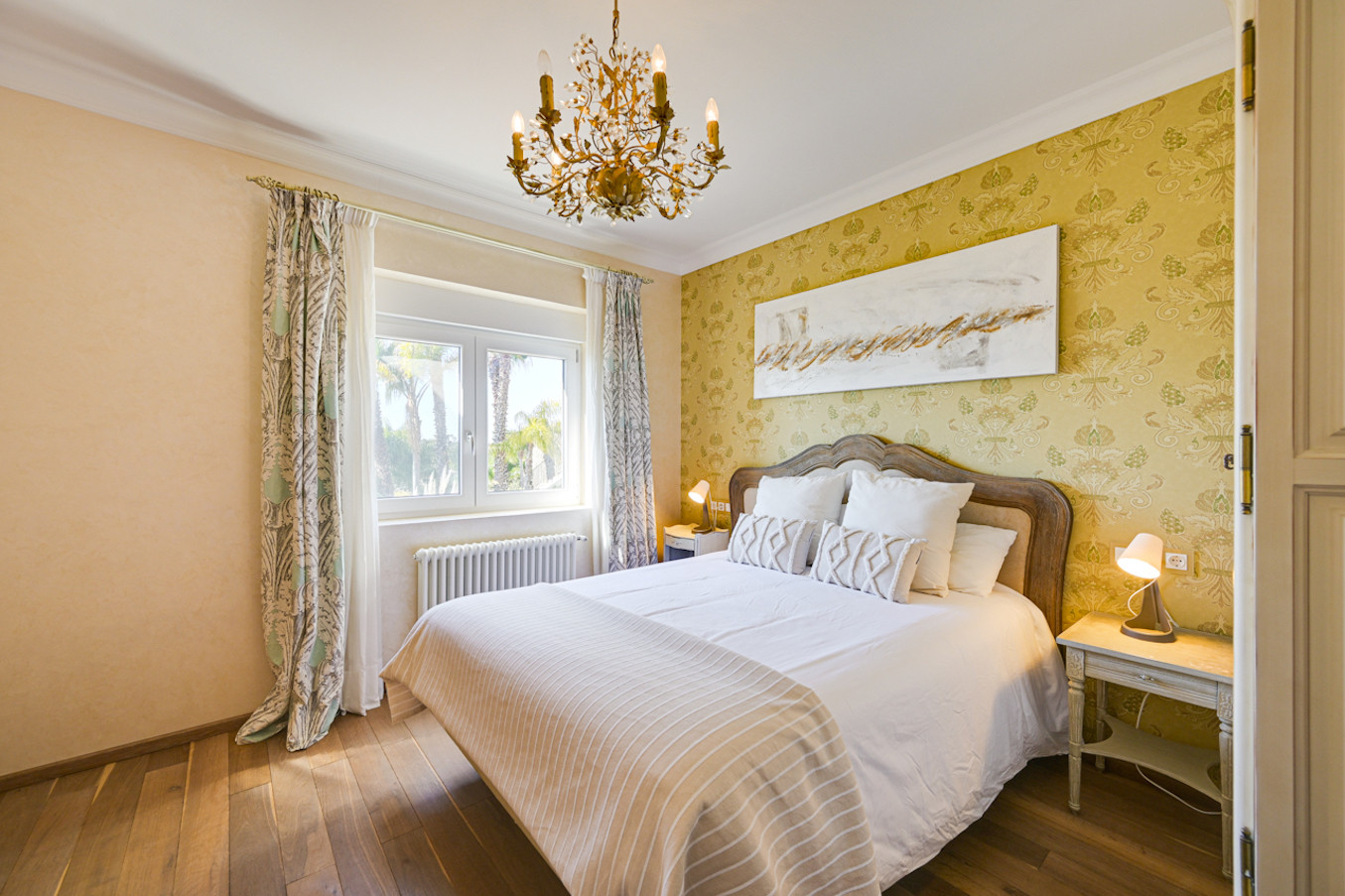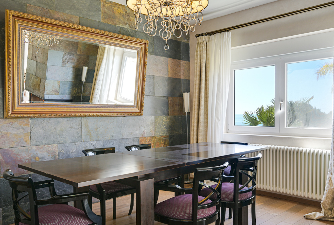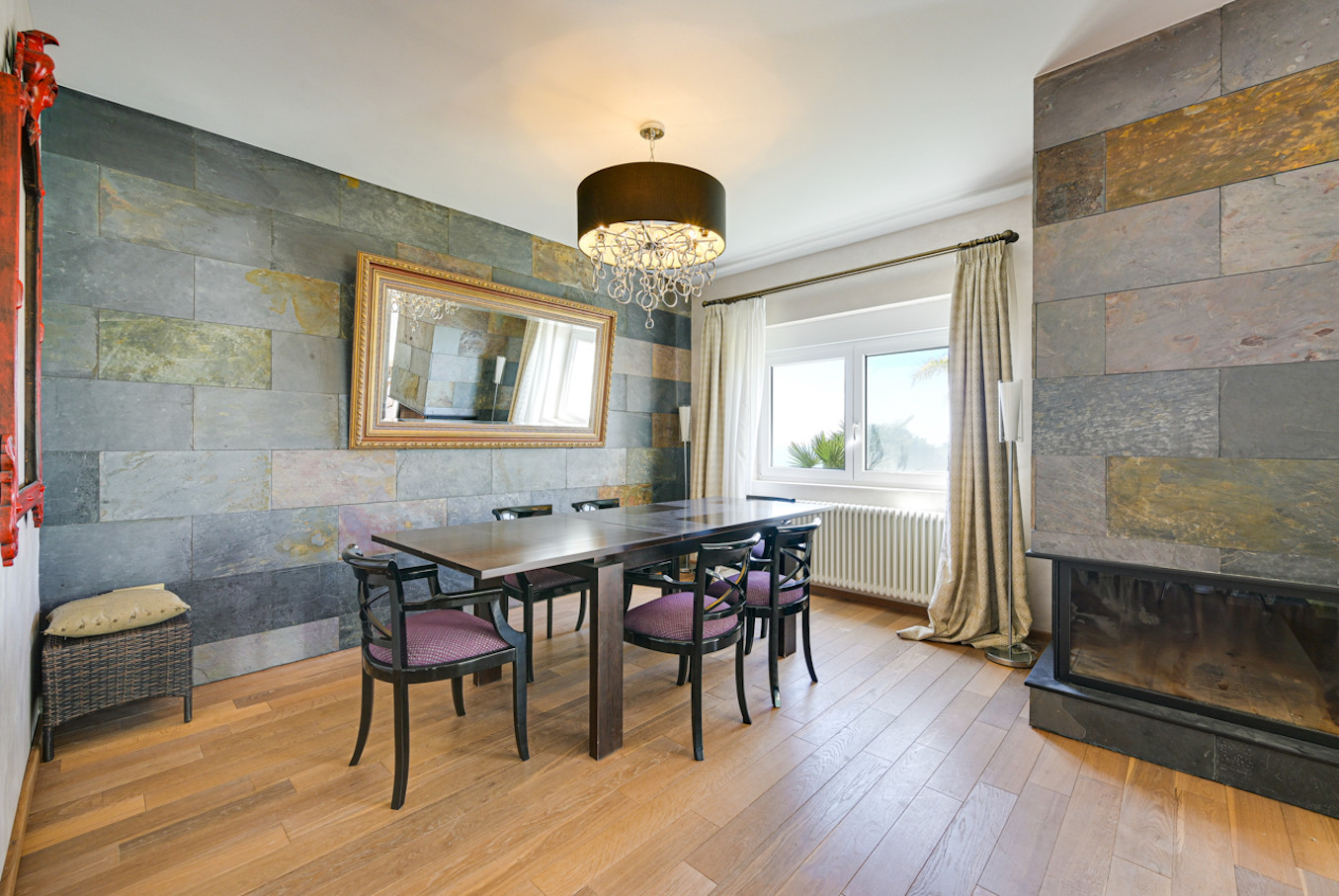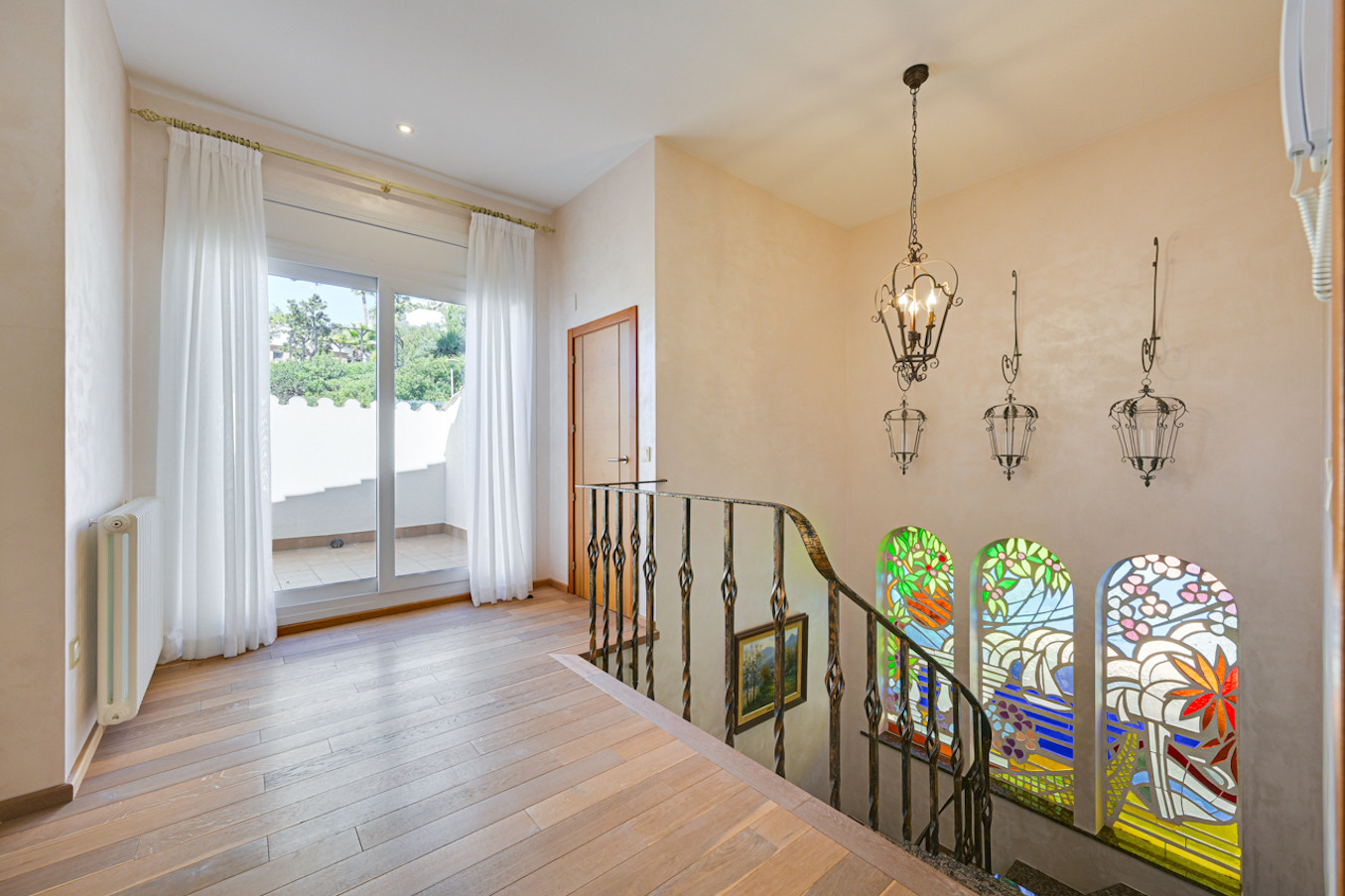 La villa ha sido decorada con mucho gusto, utilizando materiales de alta calidad, como suelos de madera y muebles de alta gama.