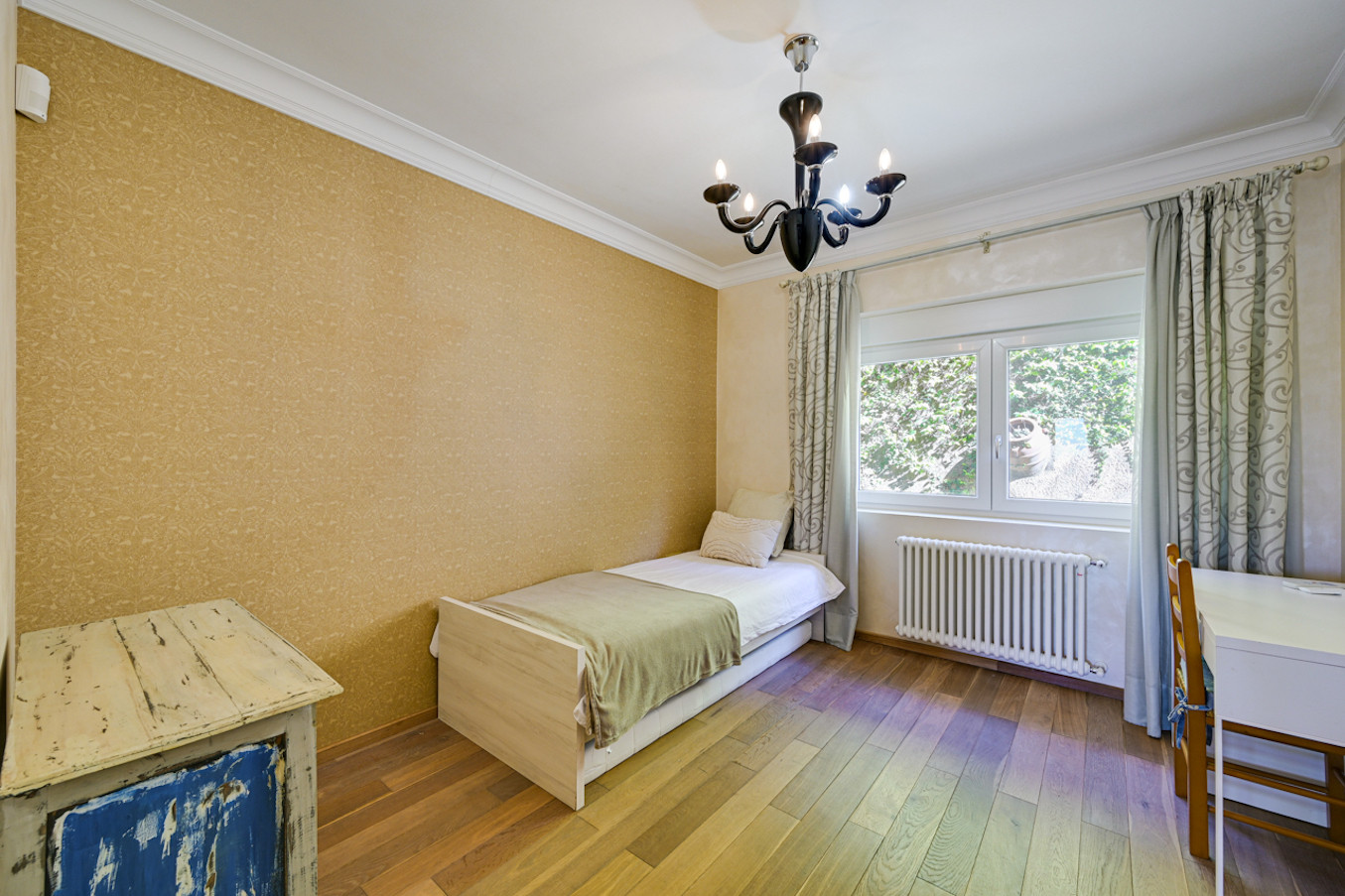 - Habitación infantil con dos colchones individuales (uno sobre la cama y otro en el suelo).