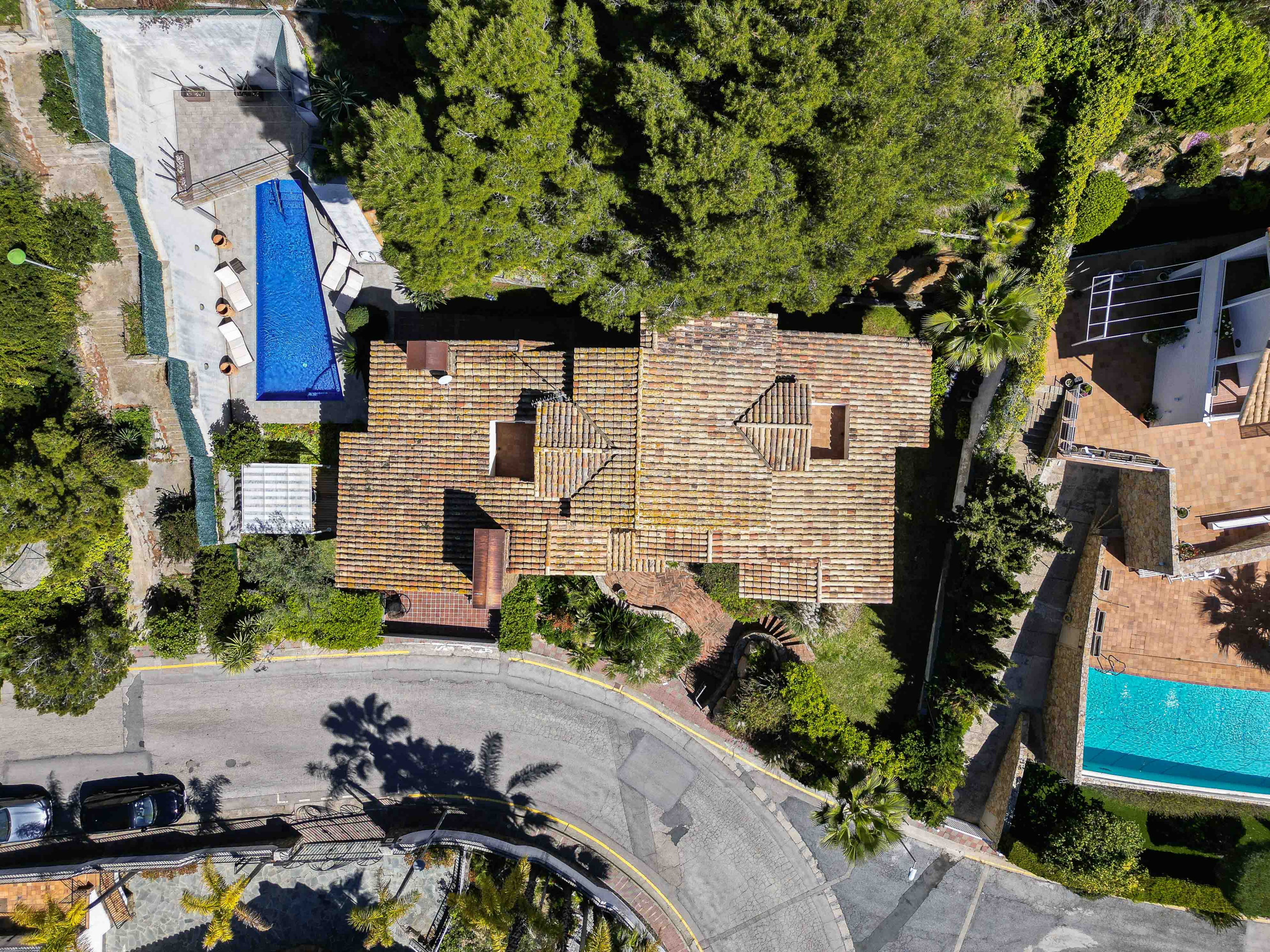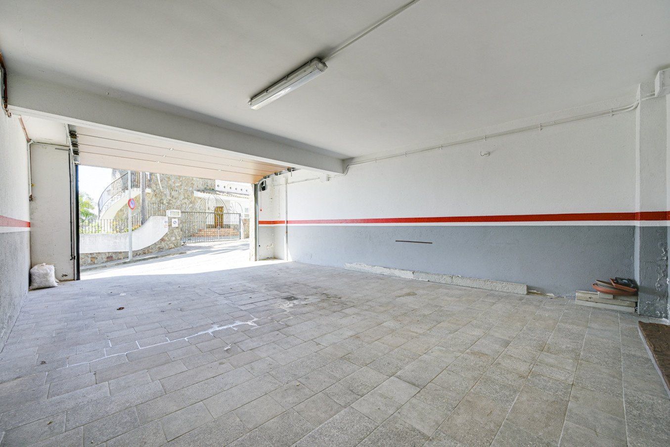 Se accede a la villa a pie de calle, donde encontrará el garaje privado para dos coches. Desde aquí se accede a la planta principal.