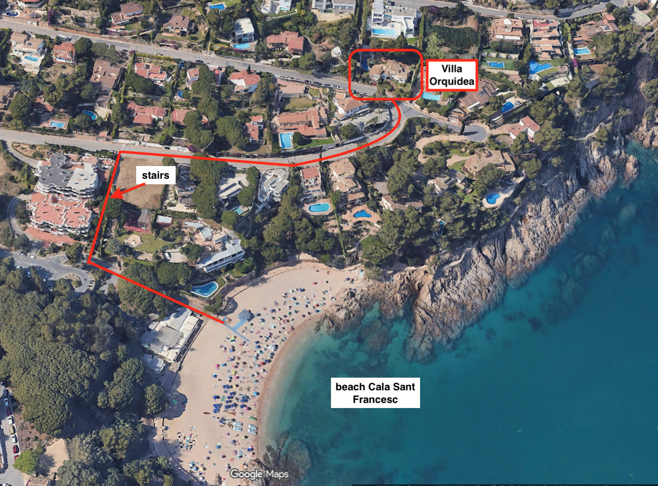 La preciosa playa de Cala Sant Francesc está a tan solo 5 minutos a pie. Simplemente baje de la villa, suba las escaleras a la izquierda y ¡ya estará en la playa!
