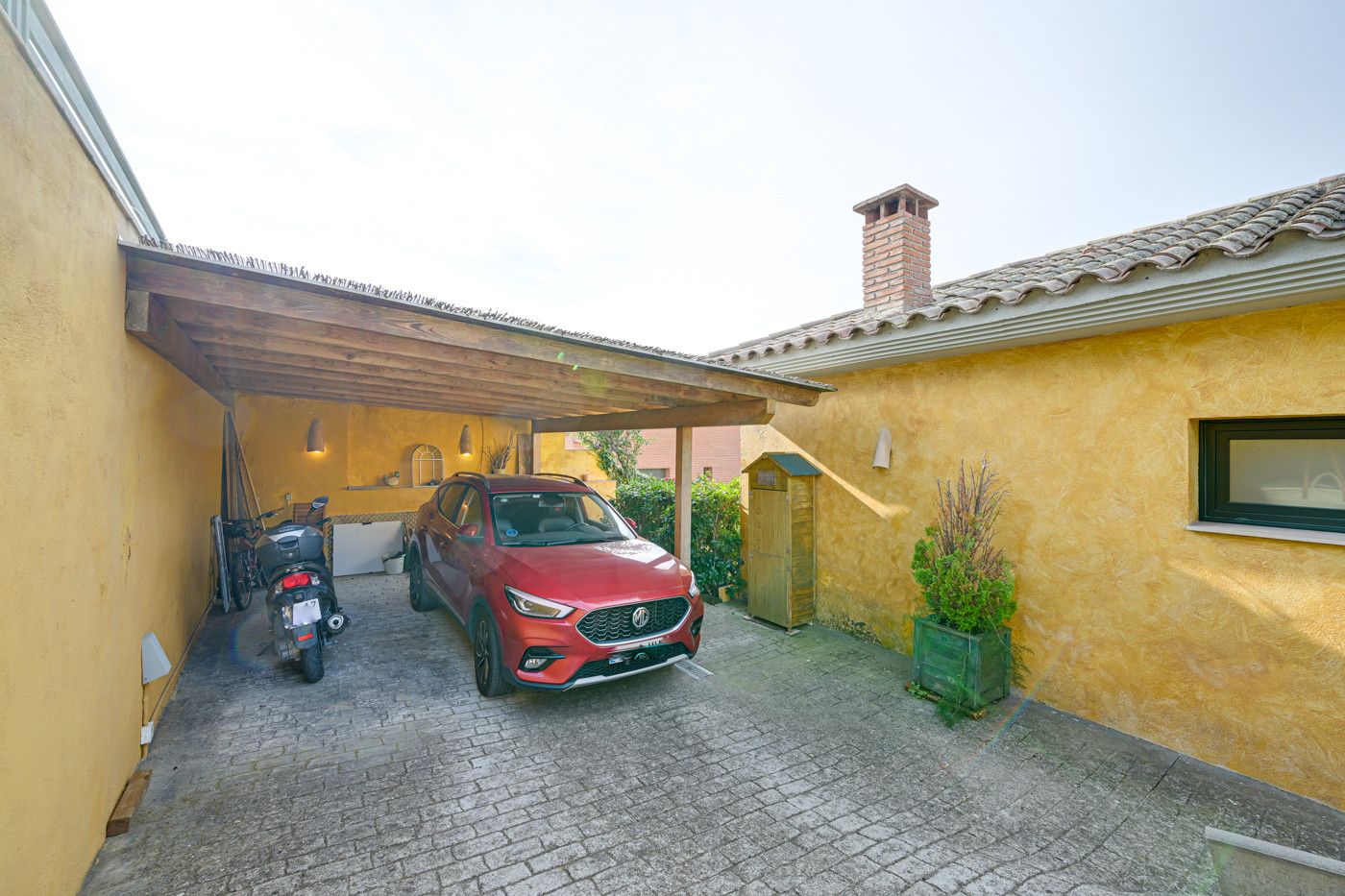 De oprit heeft een redelijk stijle helling en een kortere draai die met een wat langere auto niet of nauwelijks te maken is. De auto kan dan echter direct voor de villa op de bredere straat geparkeerd worden, dus geen ramp.