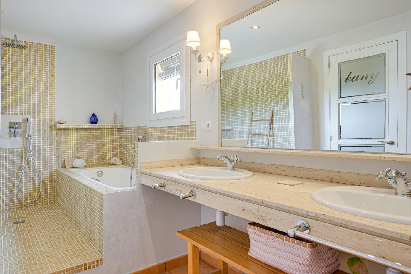 Se accede a la vivienda por la primera planta. Aquí se encuentra el dormitorio principal con vestidor y baño en-suite con doble pica, ducha y bañera. Vistas al mar también desde aquí.