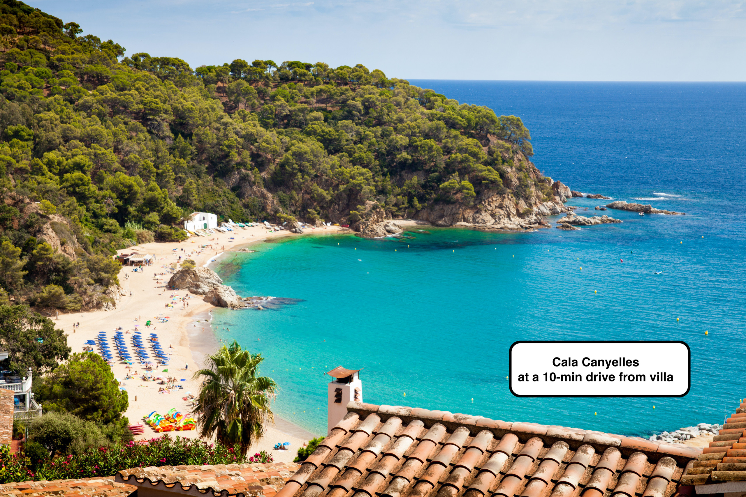La playa recomendada más cercana es Cala Canyelles, a menos de 10 minutos en coche: una hermosa cala arenosa con un pequeño puerto, restaurante de playa y actividades acuáticas.