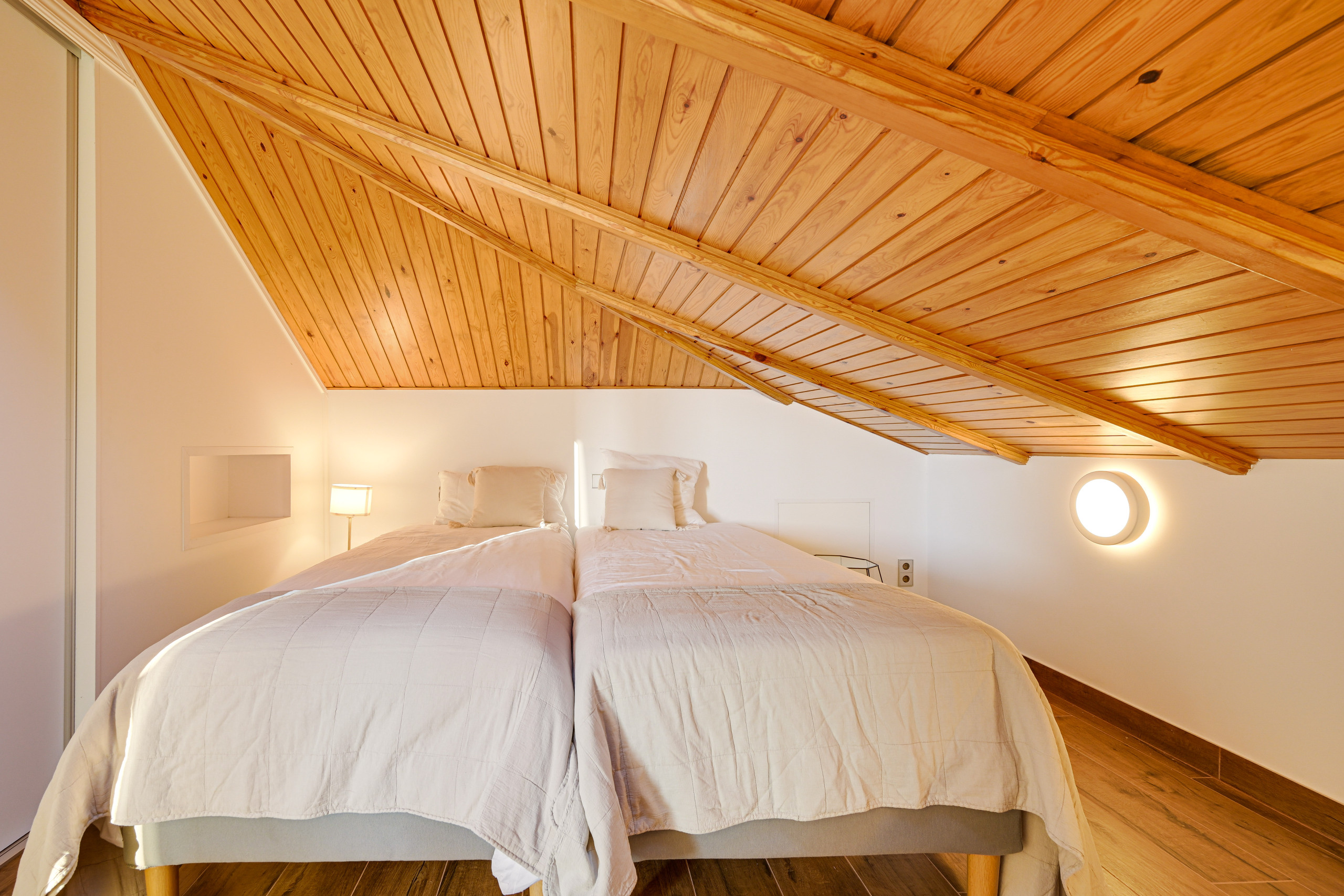 Aquí se encuentra el sexto dormitorio, con dos camas individuales, y el tercer baño con ducha.