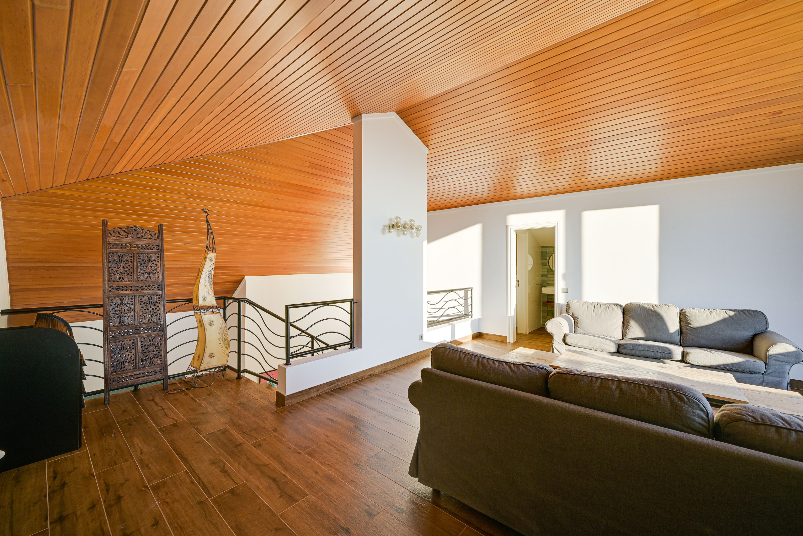 En la planta superior hay una segunda zona de estar con dos sofás, ideal como espacio de juegos o descanso para los niños.