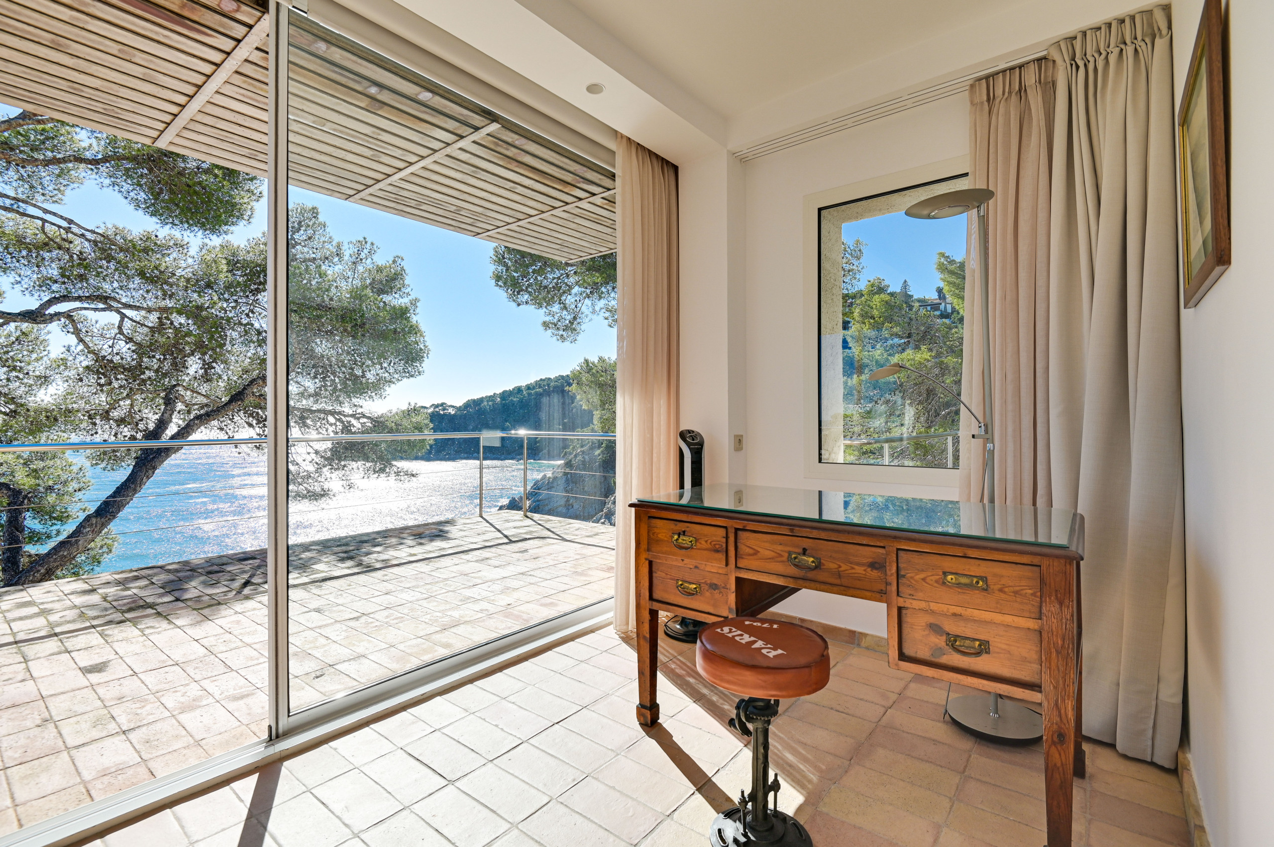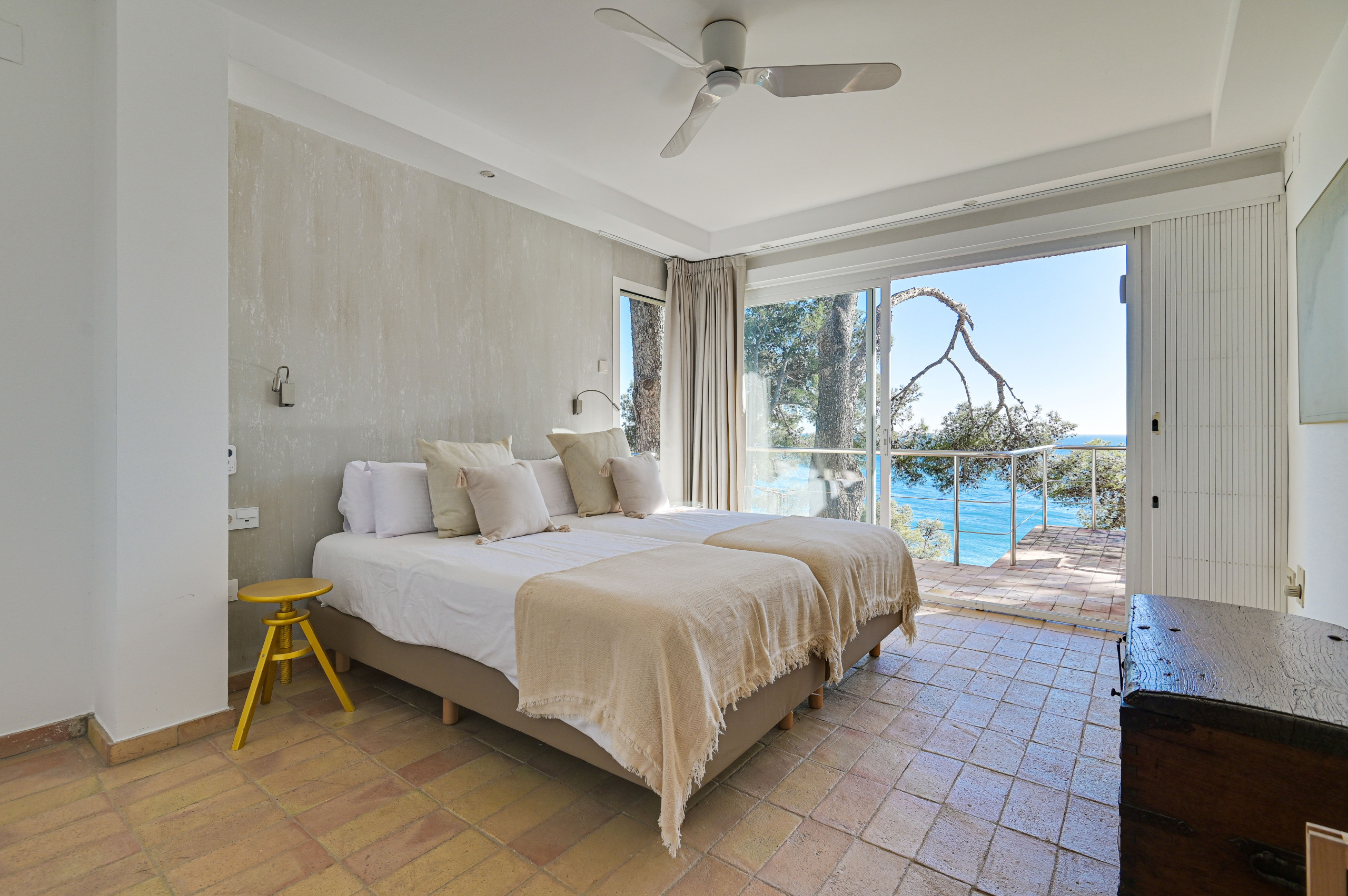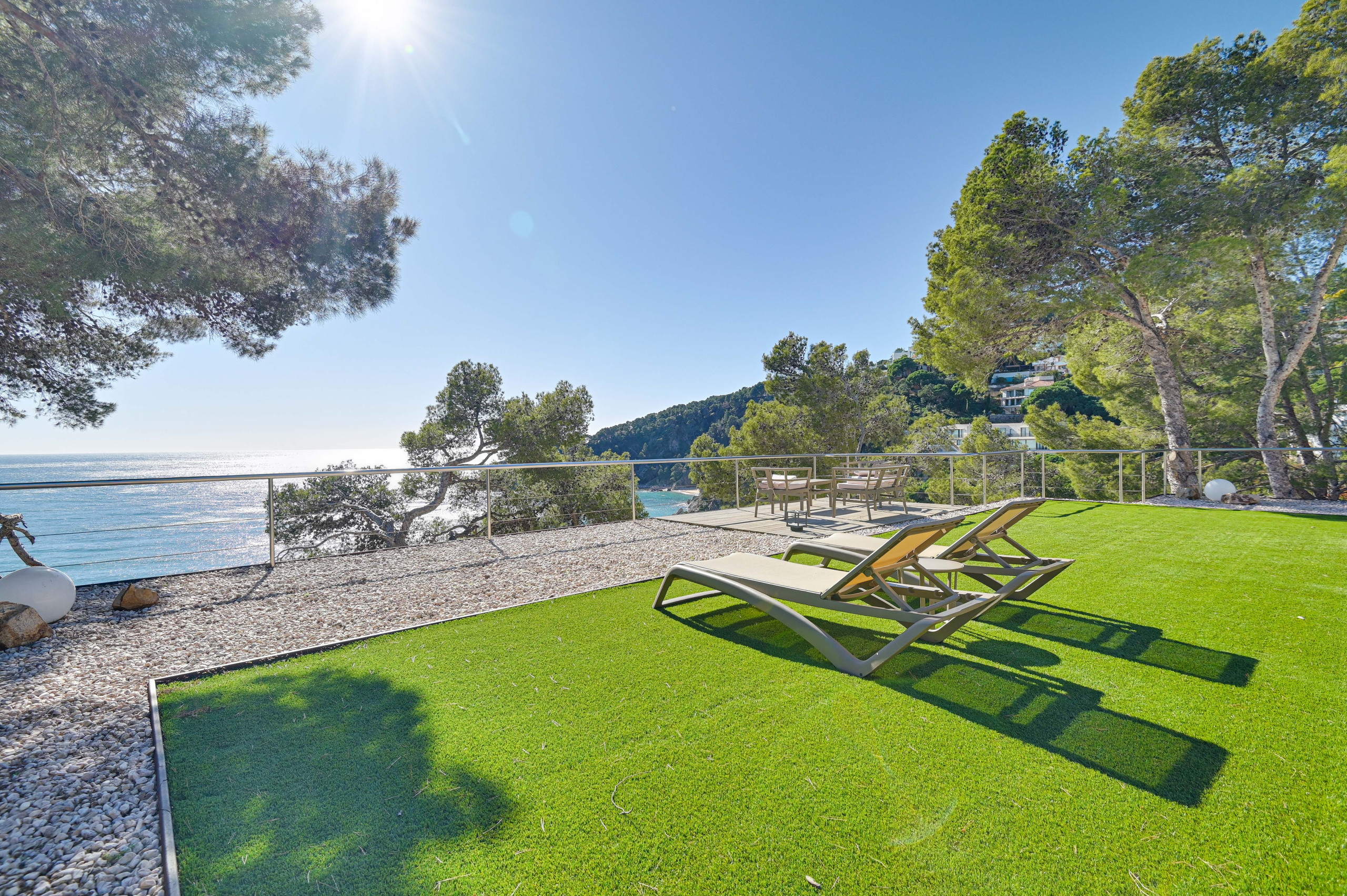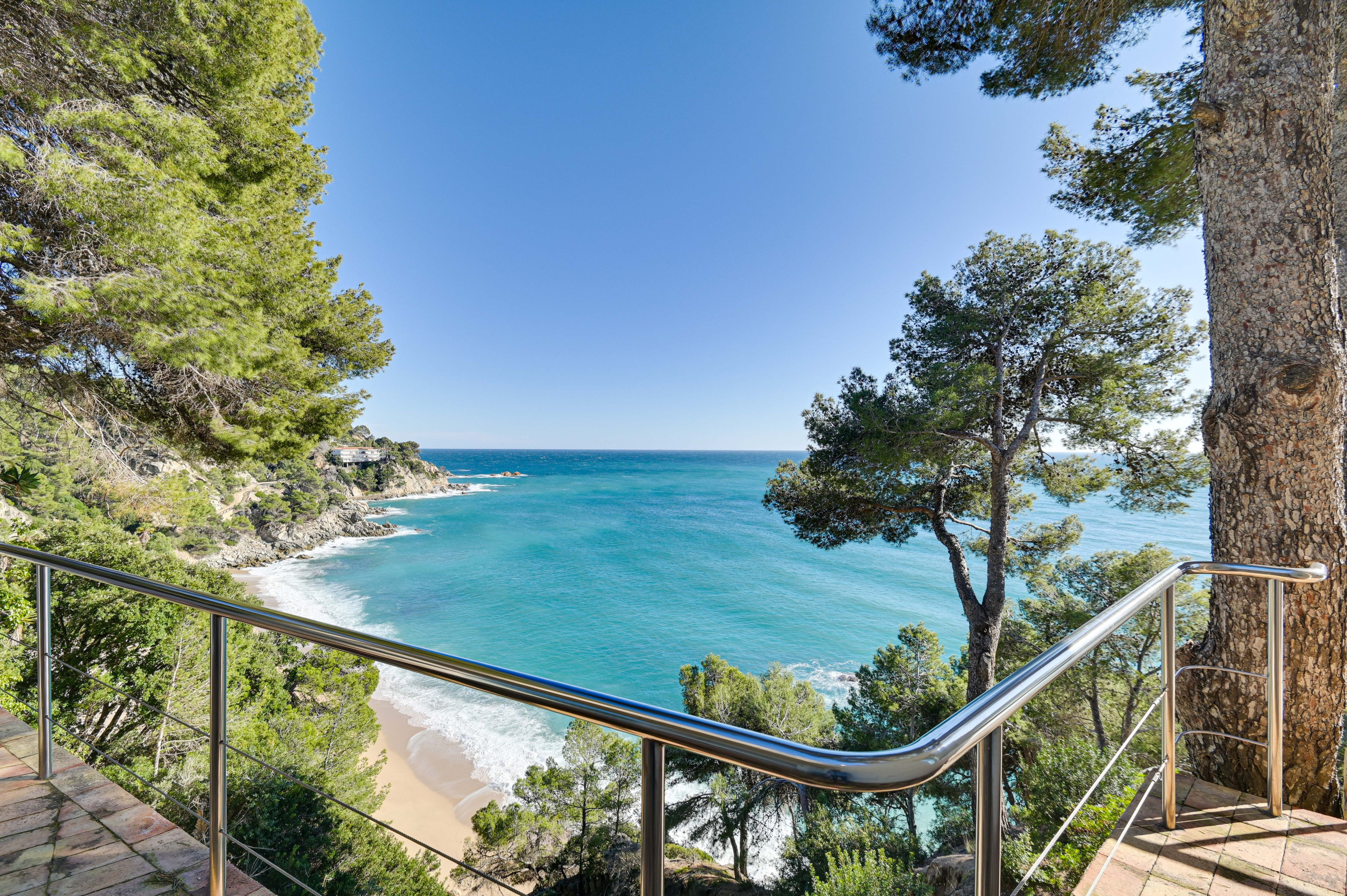 La villa ofrece vistas impresionantes en 360º, con la playa a ambos lados y panorámicas de la Costa Brava con sus aguas cristalinas, formaciones rocosas y pinares. Además, es una de las pocas villas con acceso privado a la playa: solo hay que bajar por la escalera desde la terraza y ¡tendrá los pies en la arena!