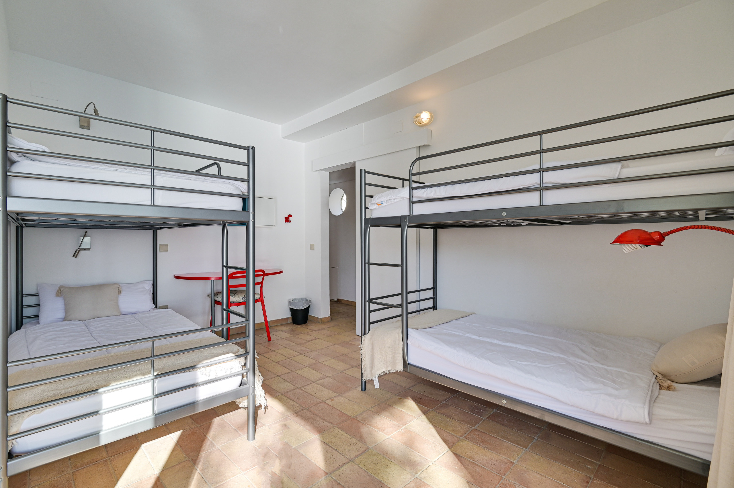 Dormitorio 4: habitación cuádruple con dos literas, ideal para niños, vistas al mar y acceso a balcón.