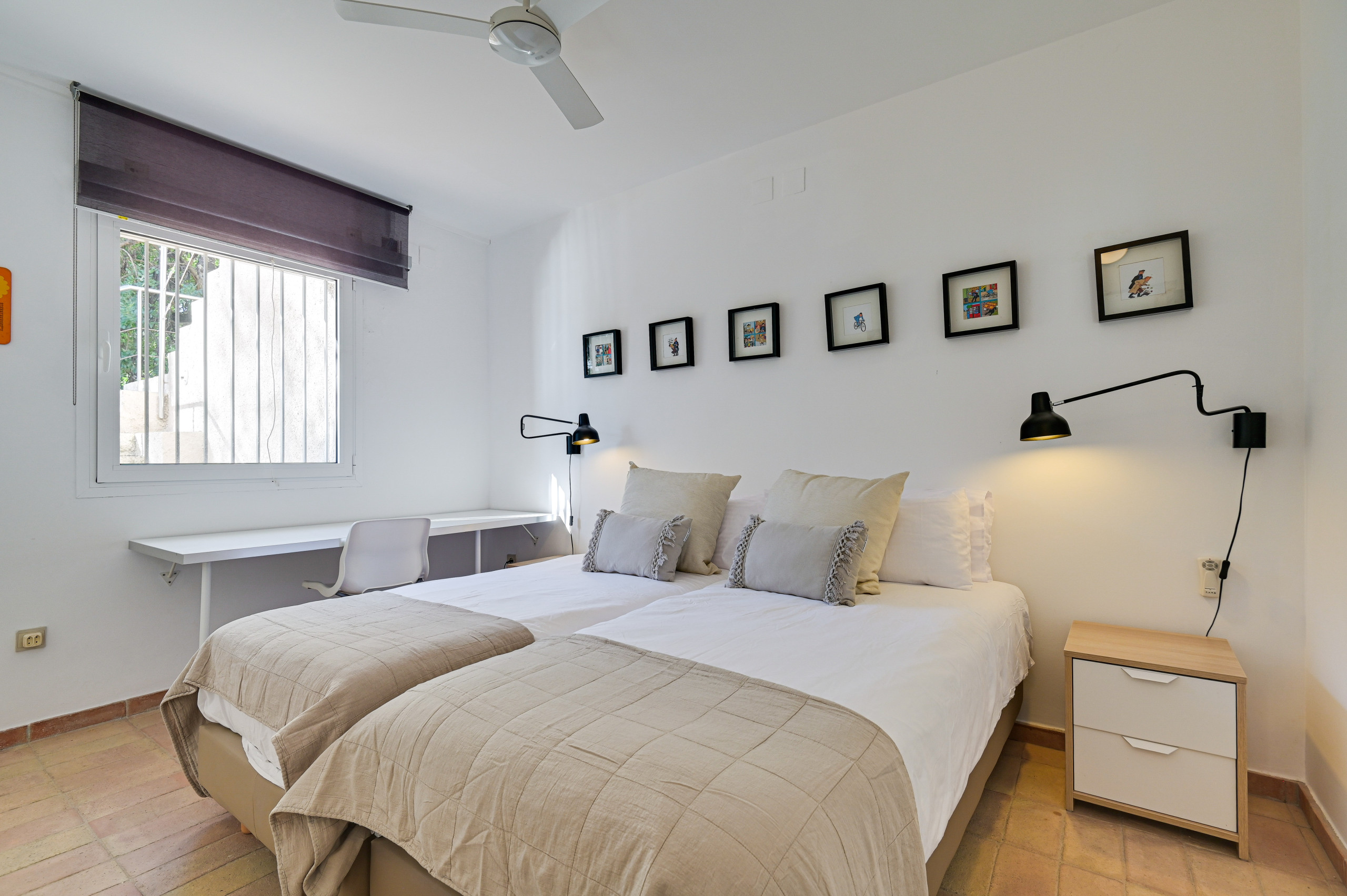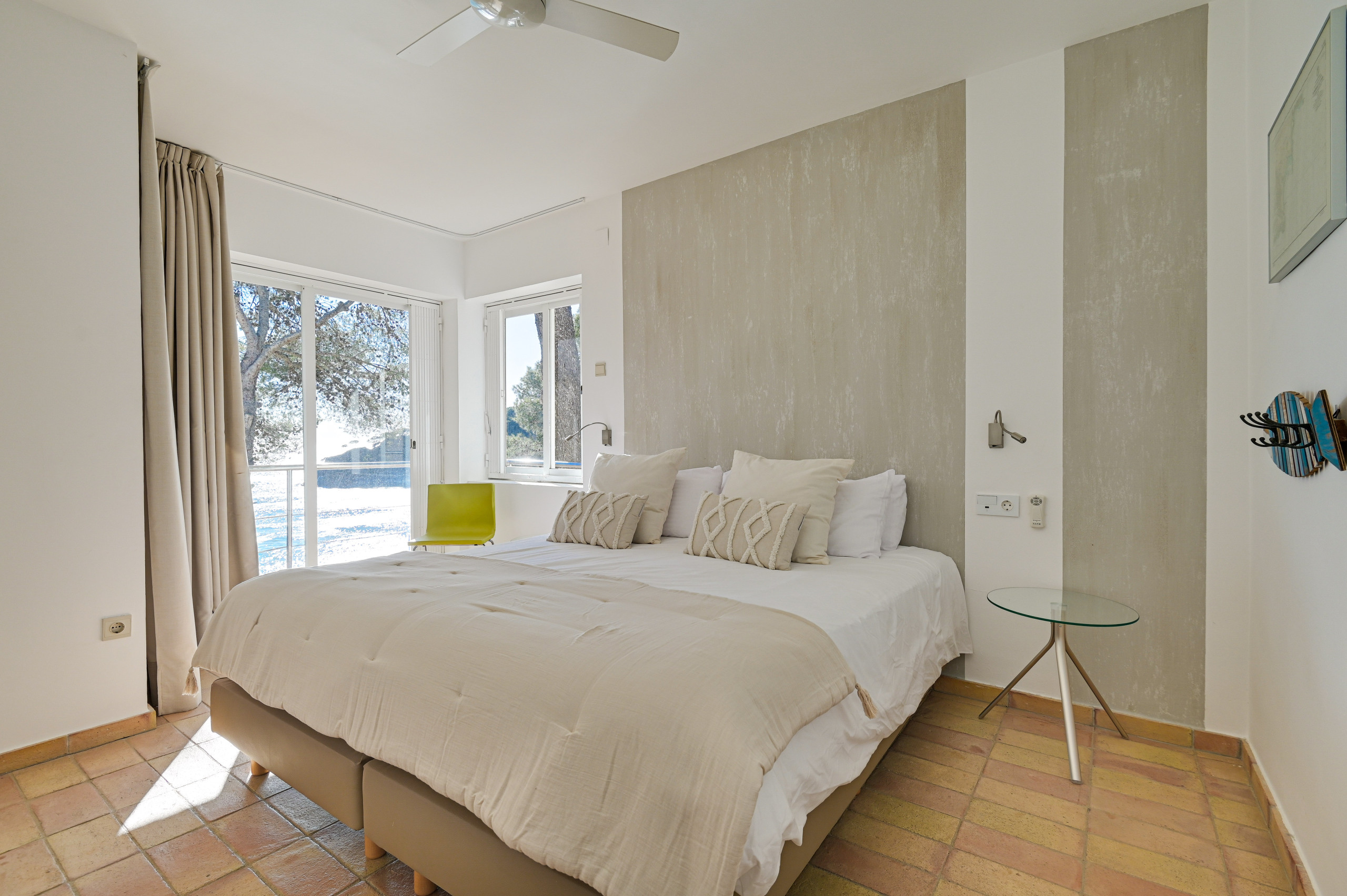 Todas las camas dobles miden 180 cm de ancho y las individuales 90 cm. Las habitaciones cuentan con ventiladores de techo, aunque la brisa marina proporciona frescor natural en toda la villa.