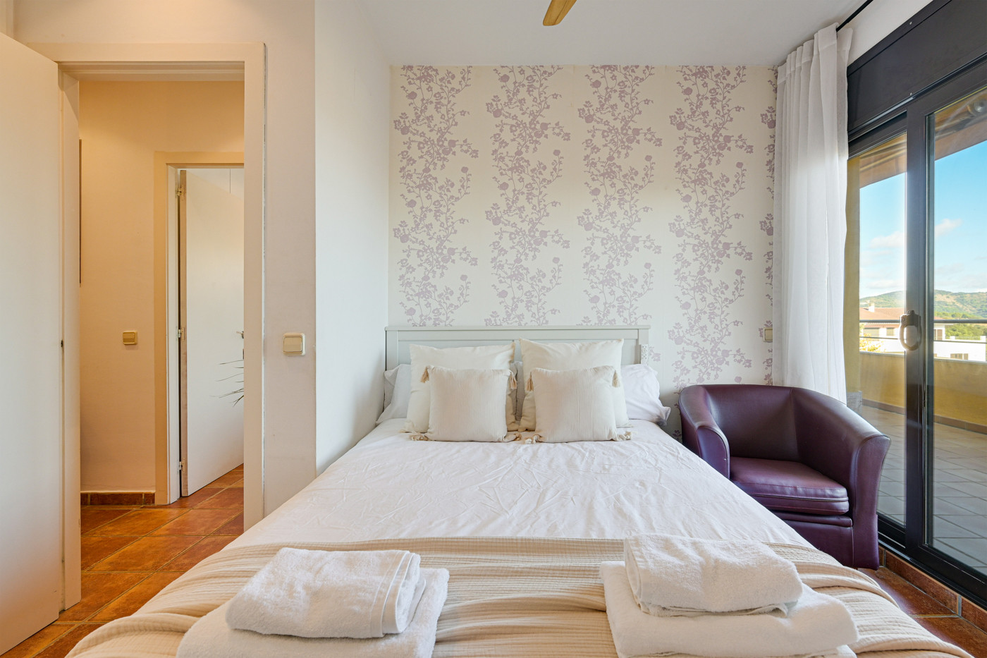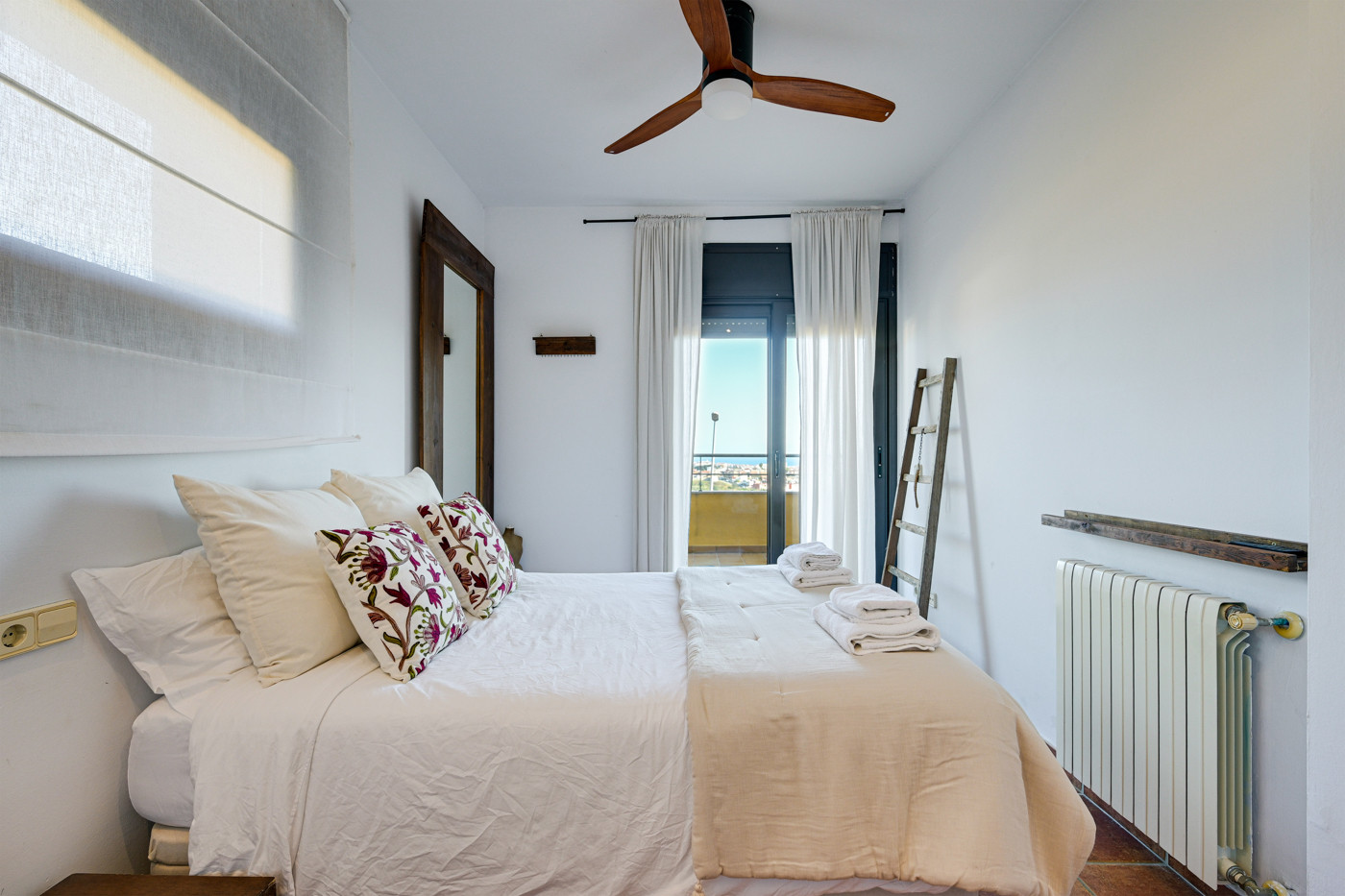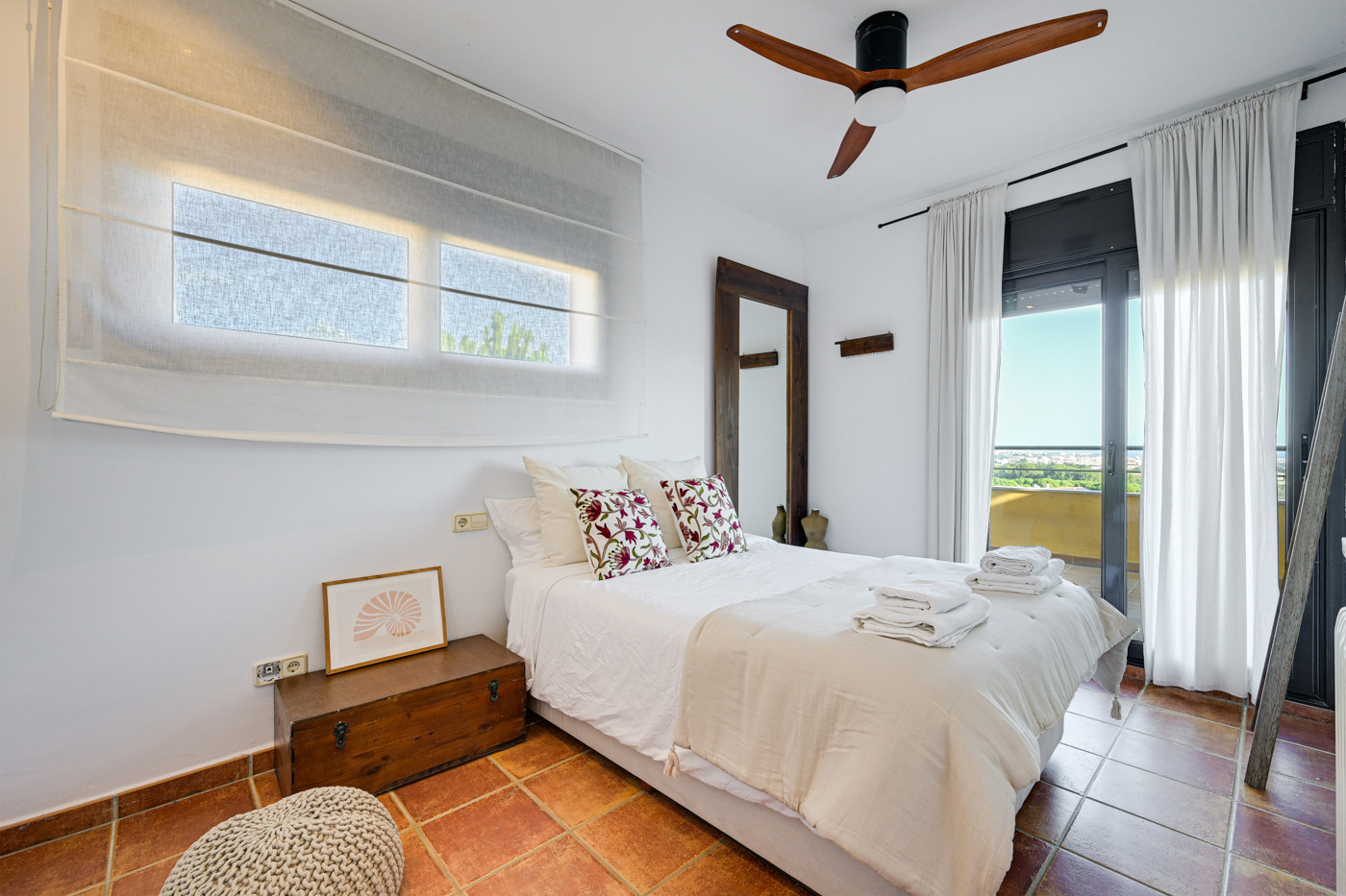 - 2 autres chambres doubles, chacune avec un lit double (140cm). Ces deux chambres ont accès au balcon avec vue sur mer.