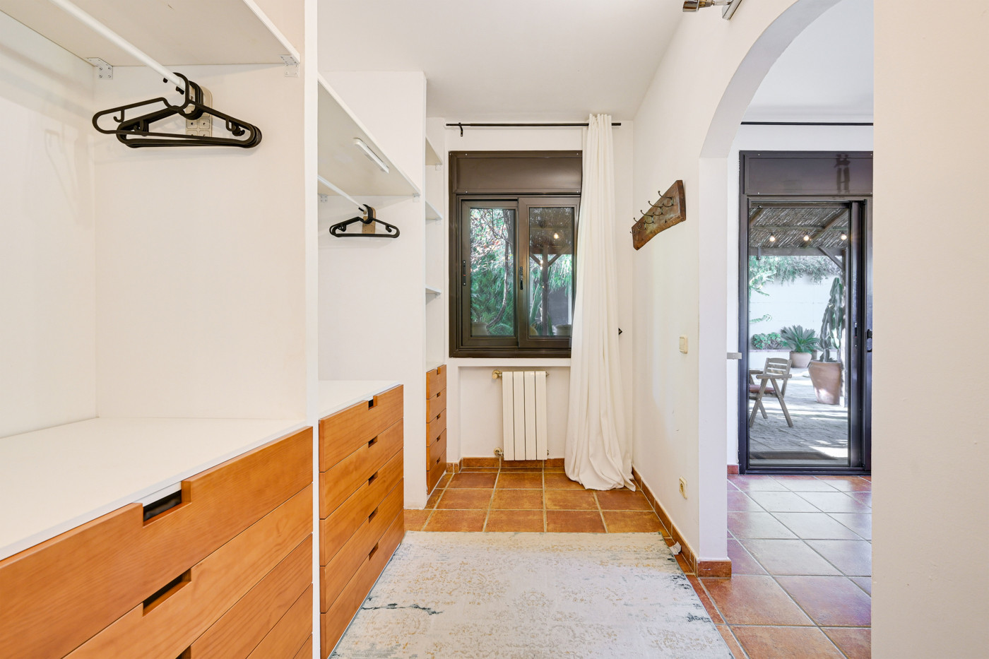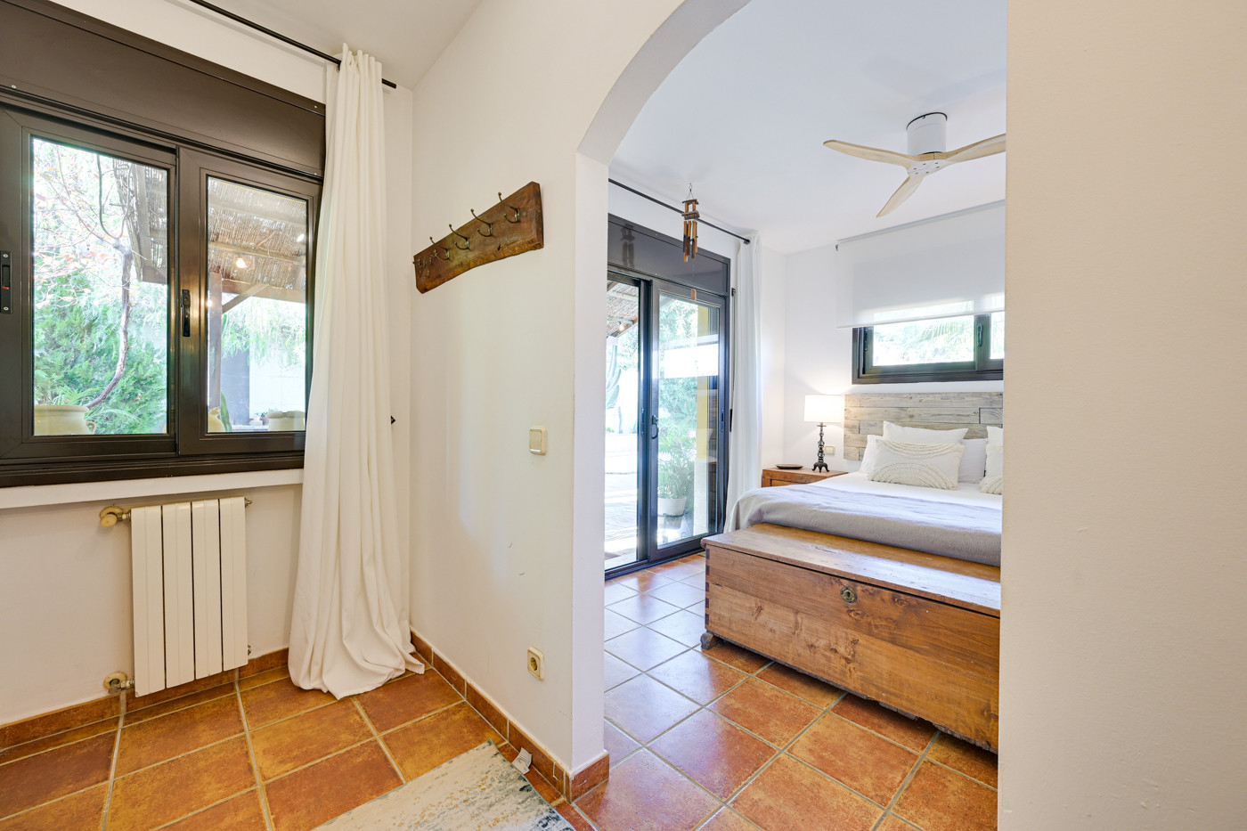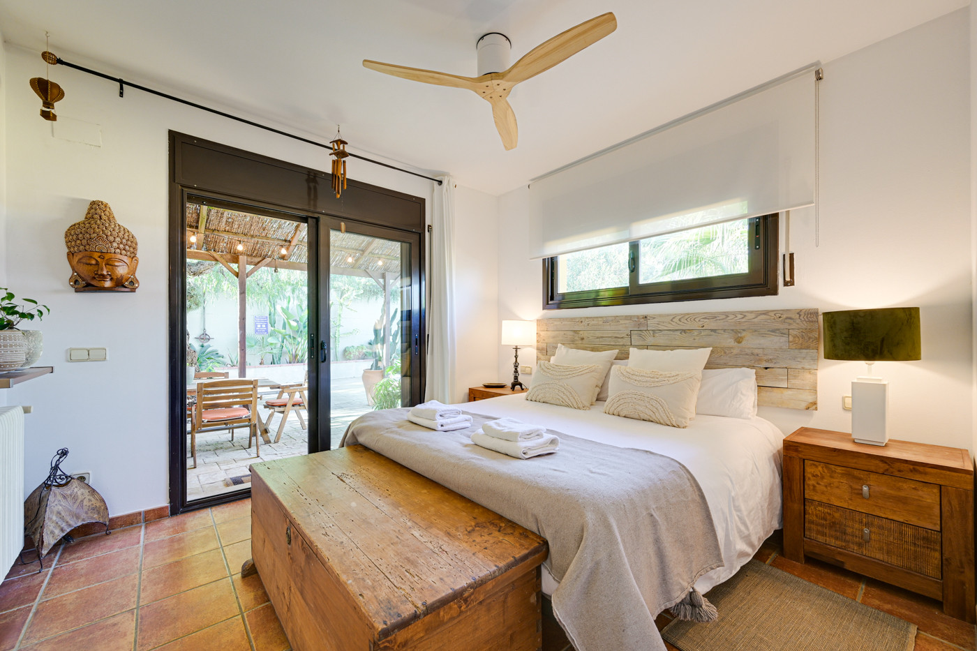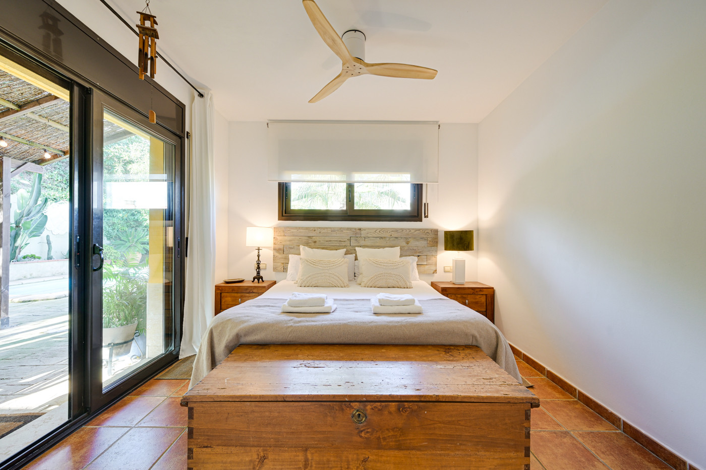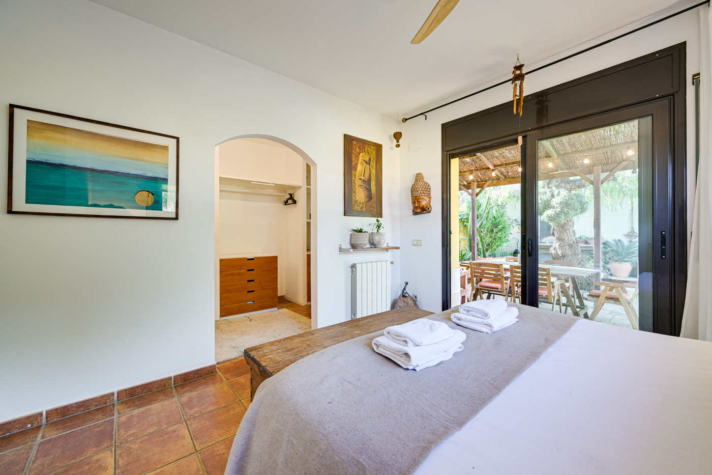 - Chambre principale avec lit double (160cm), dressing et accès direct à la terrasse et à la piscine.