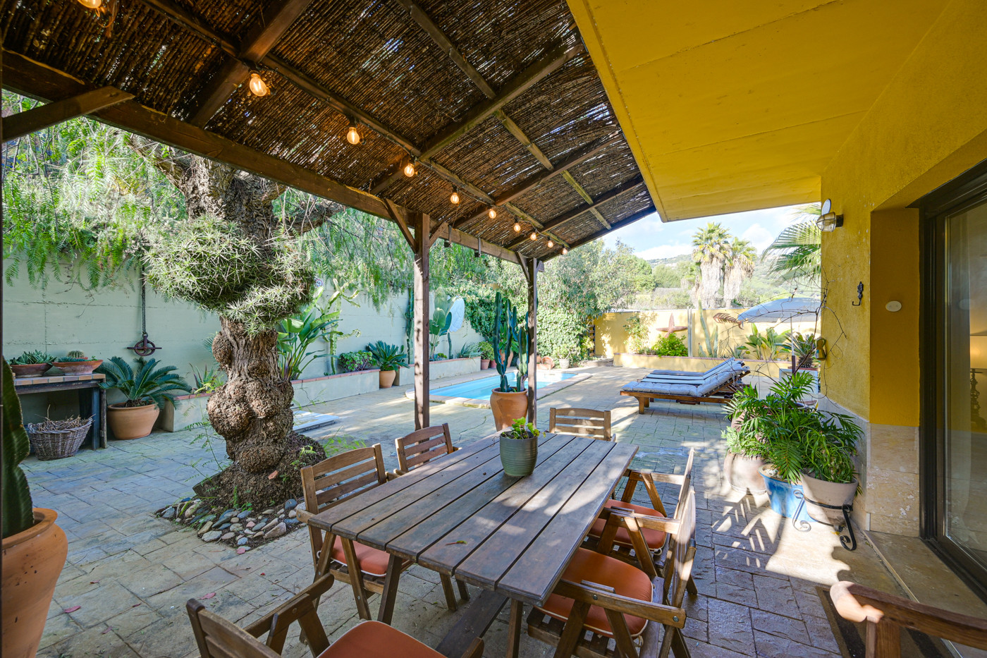 Il se caractérise par sa décoration avec des meubles rustiques restaurés et un espace extérieur plein de belles plantes, une piscine privée, deux porches et une vue sur la mer.