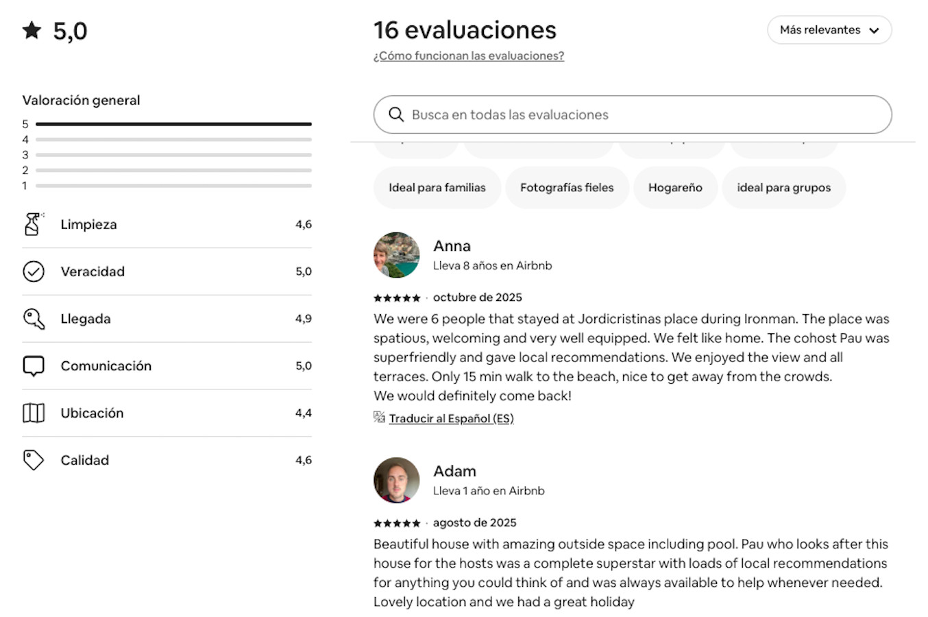Trés belle maison, très agréable a vivre, (correspond parfaitement aux photos). située sur les hauteurs de Calella, son environnement est très calme et reposant.