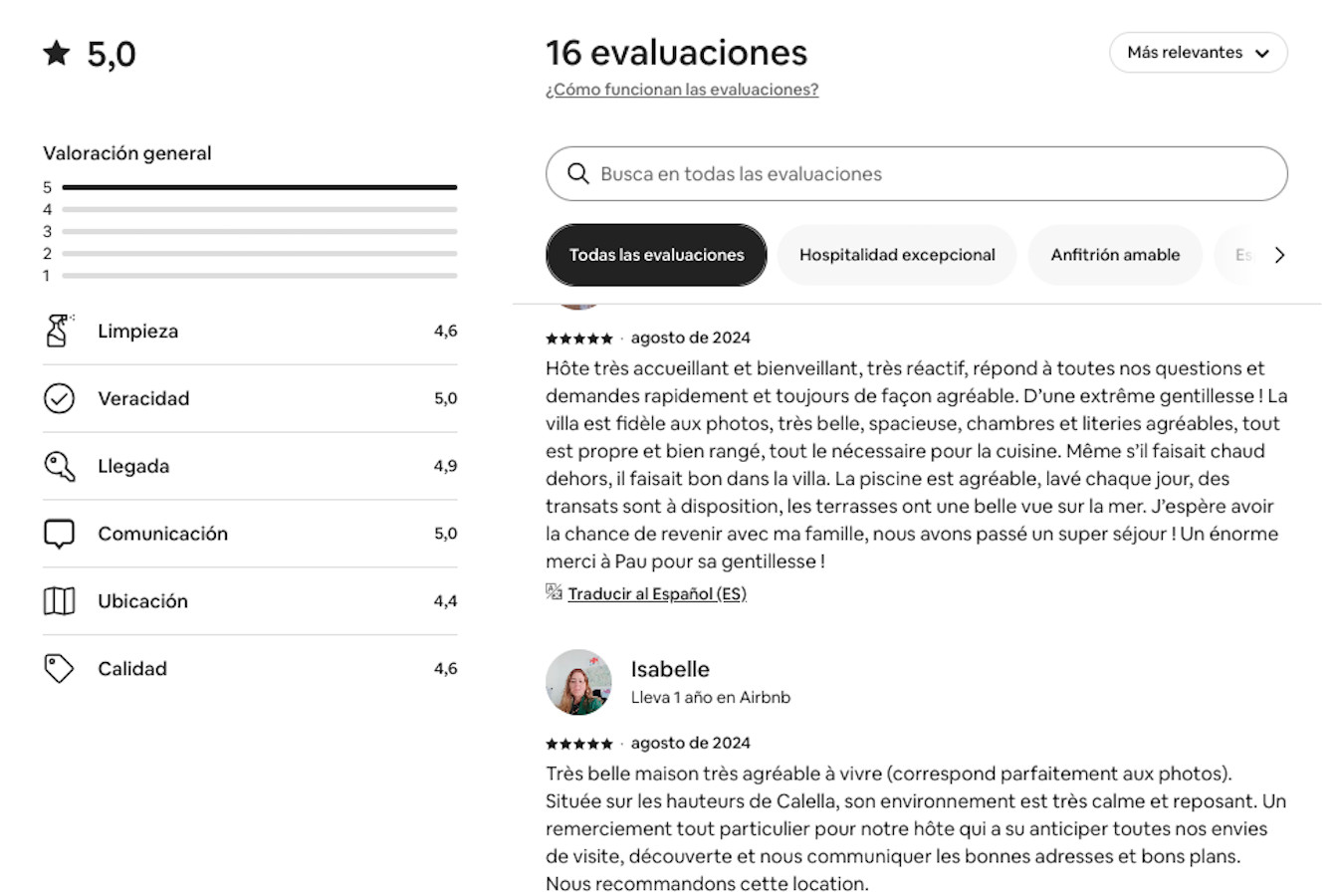 Quel superbe séjour passé dans ce magnifique logement! Nous y avons passé 10 jours dans un confort excellent et une vue á couper le souffle. Si nous devions retourner à Calella ou dans la région c'est avec grand plaisir que nous nous y rendrons en priorité. Petit conseil Si vous y voyagez en haute saison , pensez à vous équiper contre les moustiques.