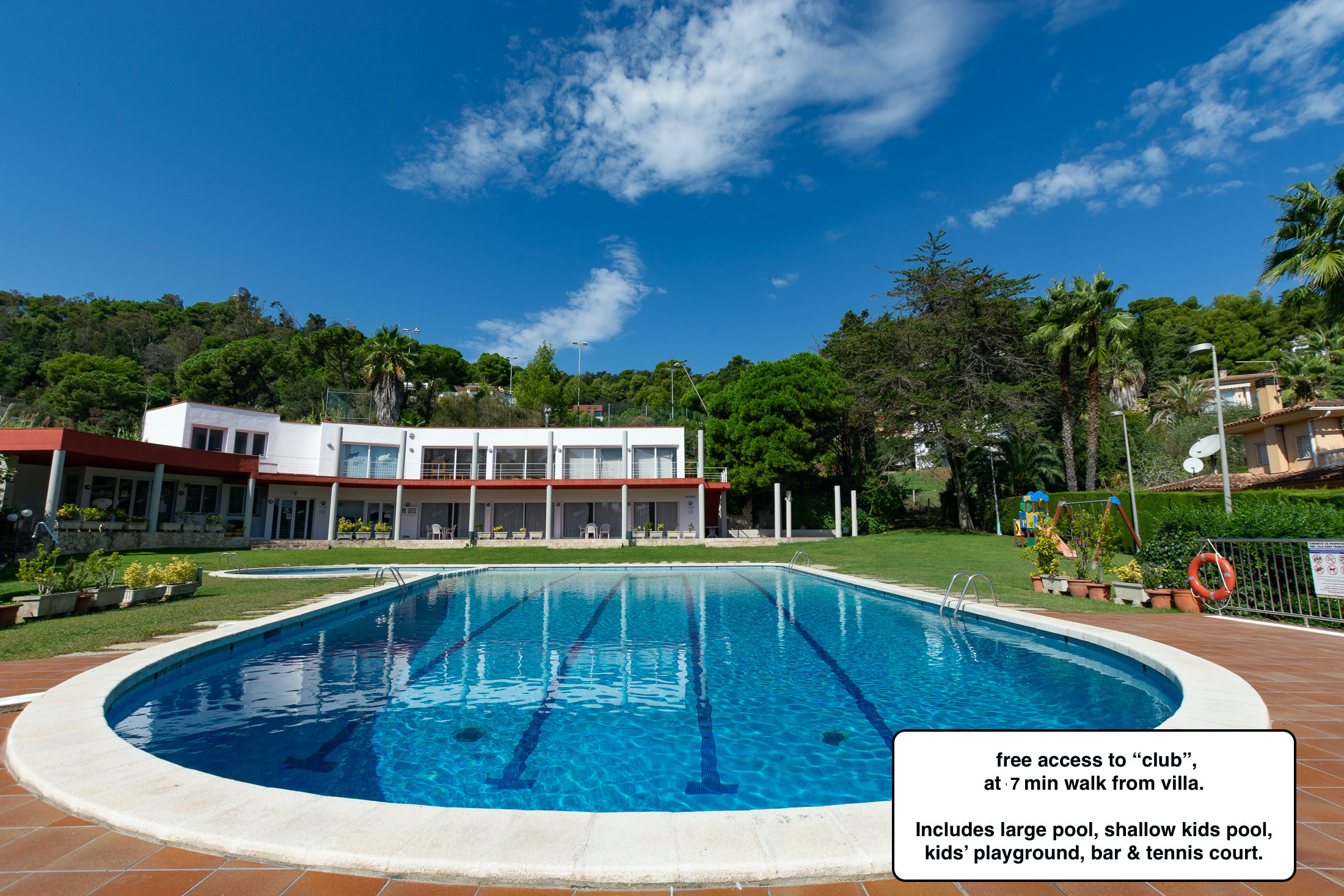 My family and I spent a wonderful week in Blanes. This villa is perfect for a family holiday strolls down to the beach for a swima sardine breakfast at the beach bar, not too far to walk into town for dinner either. There is a fabulous view and the garden is big enough for a game of bat and ball. The pool is a little small for serious swimmers but the sea is close enough for that and had a life guard during the day. The villa is very spacious with all you need to create family meals, to be enjoyed on the terrace with its beautiful view. I should mention that the fourth bedroom downstairs is an ensuite but the room itself is tiny, barely enough room to move around the bed. There is also a lack of comfortable seating in the living area.