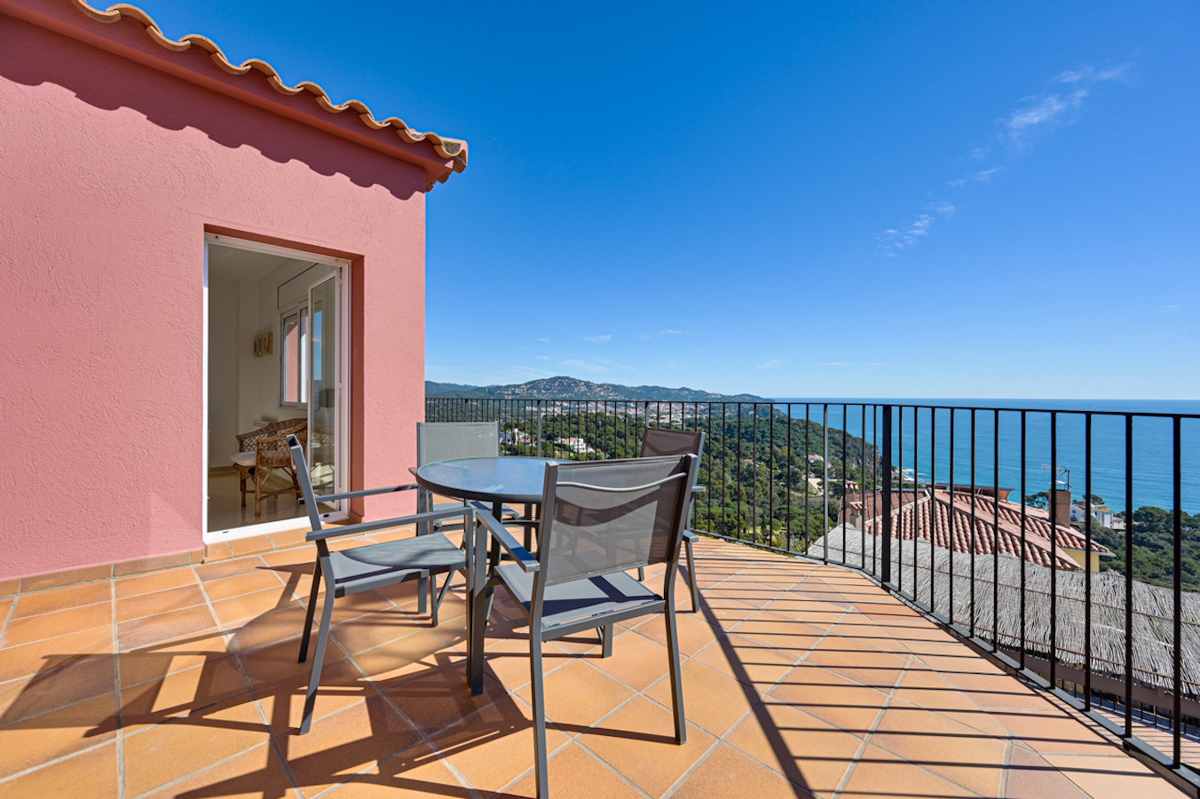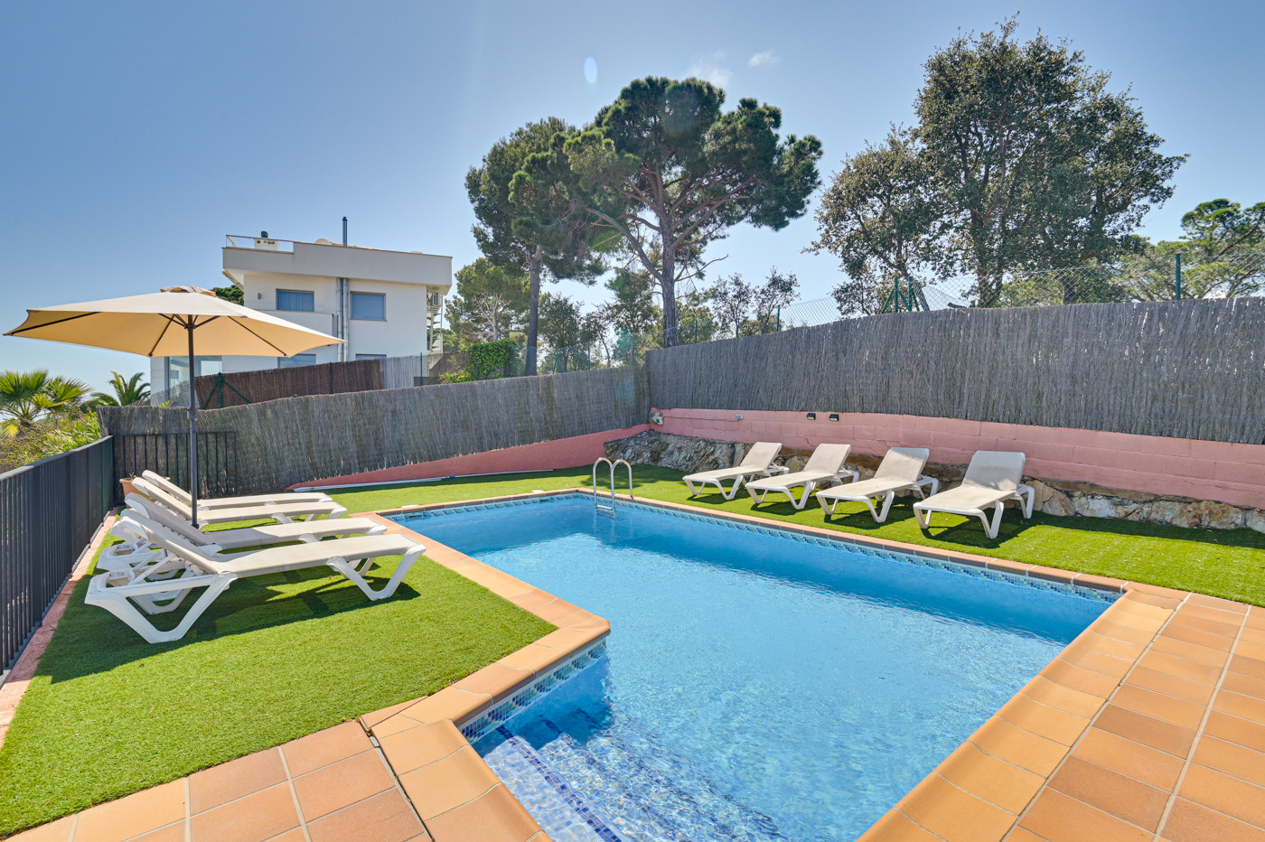 Nice location with indeed great views. Almost on top of the hill, quite a hike to the neareast beach though (about 5' but steep). Far enough from Lloret de Mar to be not disturbed by the noise. Good facilities although some of the bedrooms are on the small side. Plenty of space in and around the house, even with 10 people. Service and responsiveness from agency was very good.