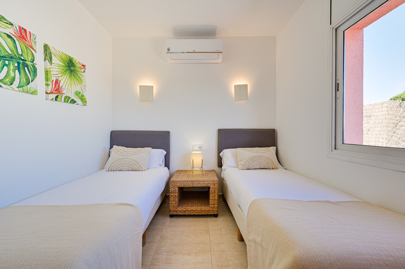 All bedrooms have built-in closets and are equipped with air conditioning. The villa is also fitted with central heating for the winter months.