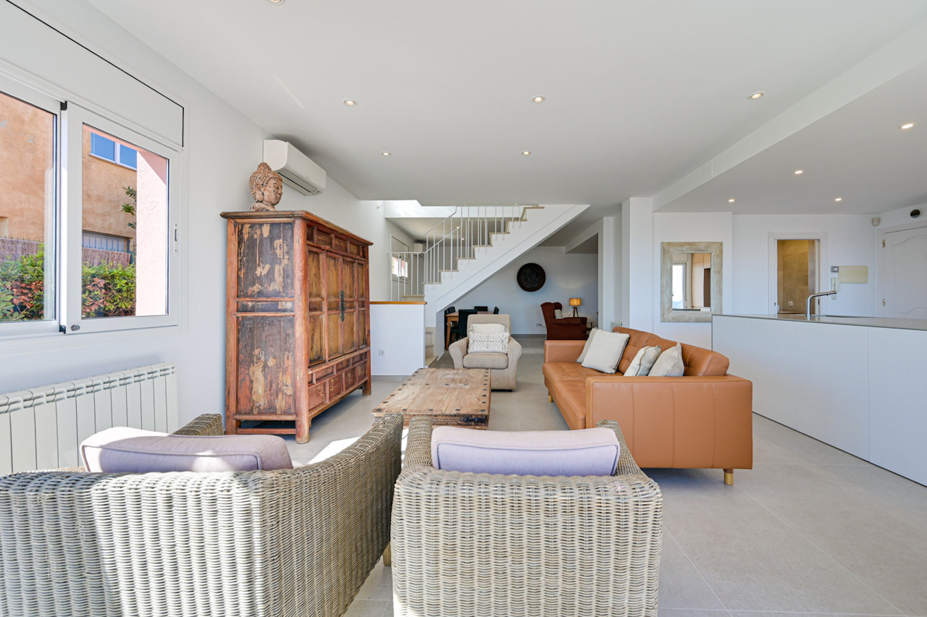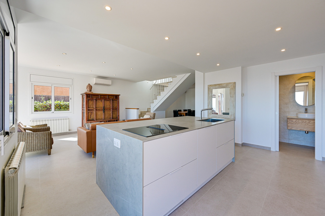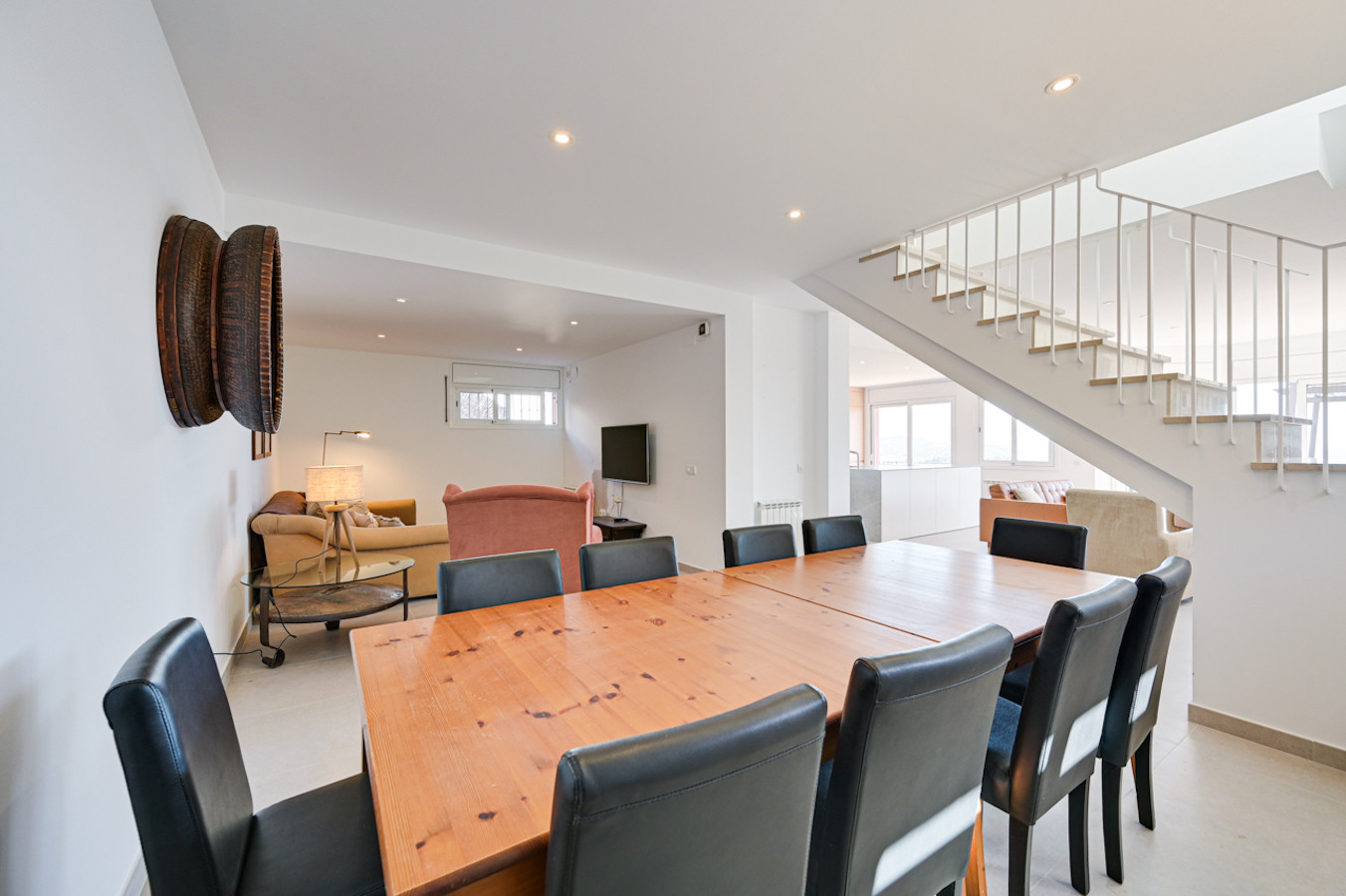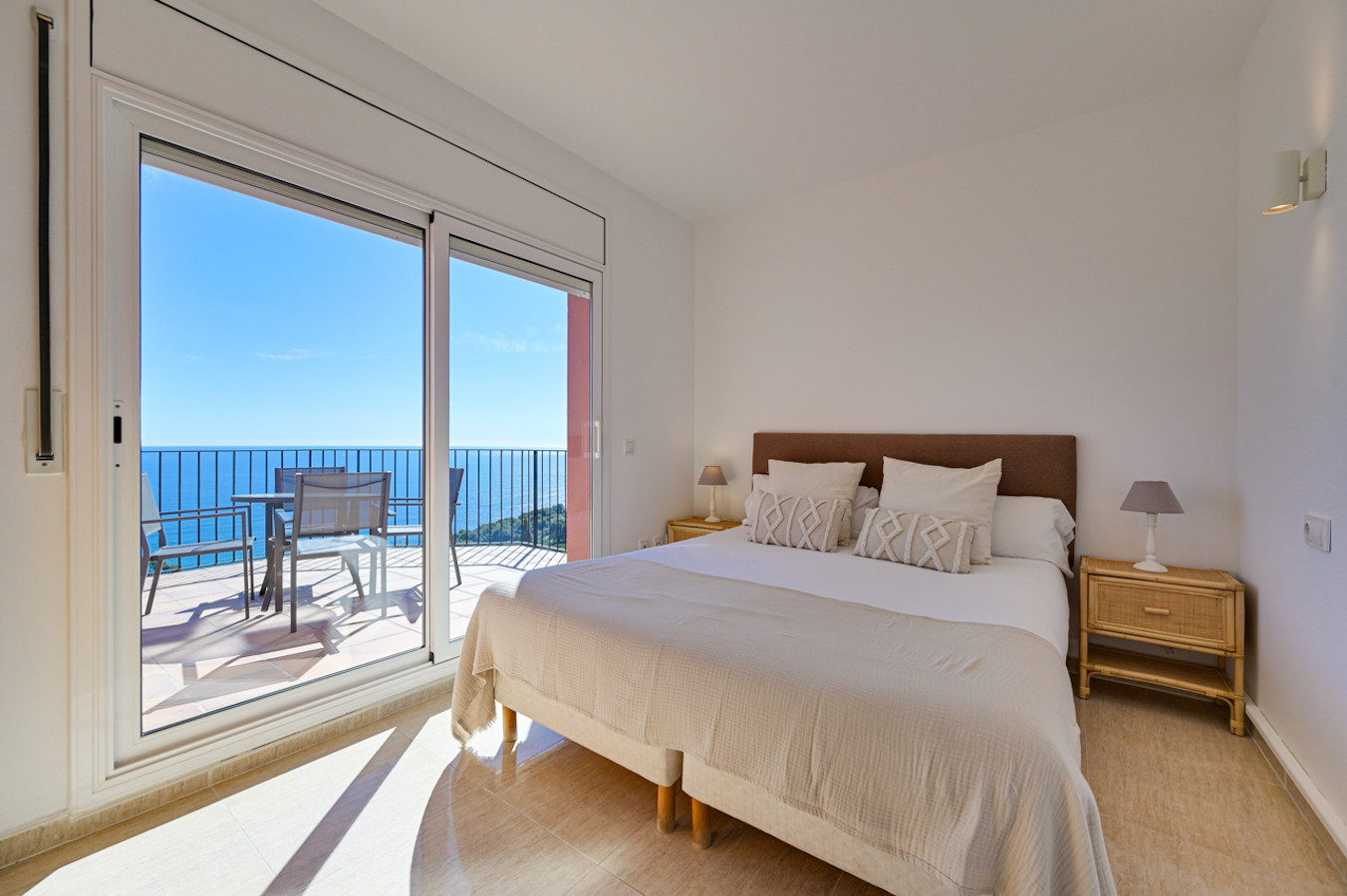 One level up, you’ll find a private pool (7x4 meters) surrounded by sun loungers and a parasol. This area enjoys sunshine all day long, offering the perfect spot to relax while enjoying the panoramic Mediterranean views.