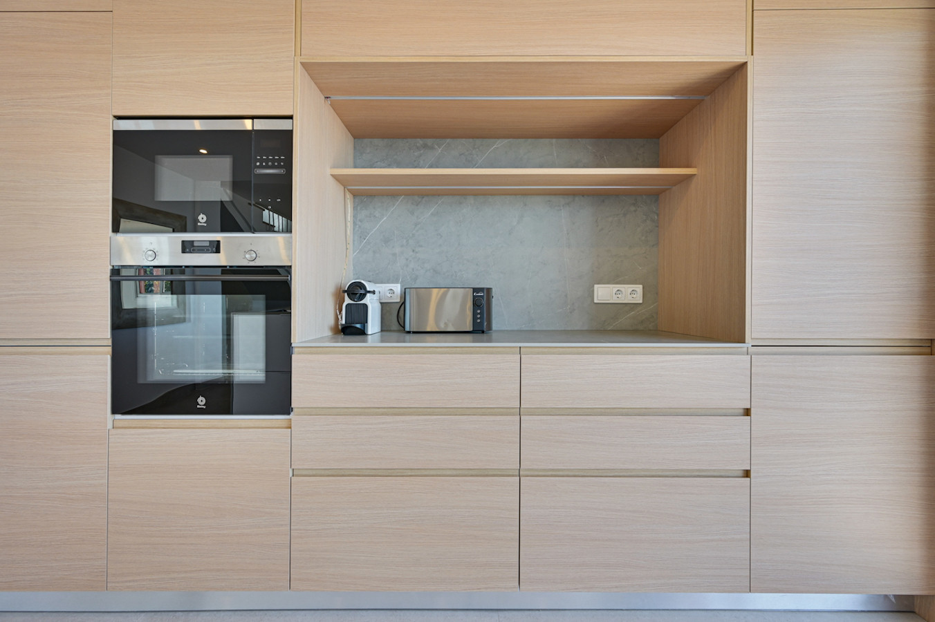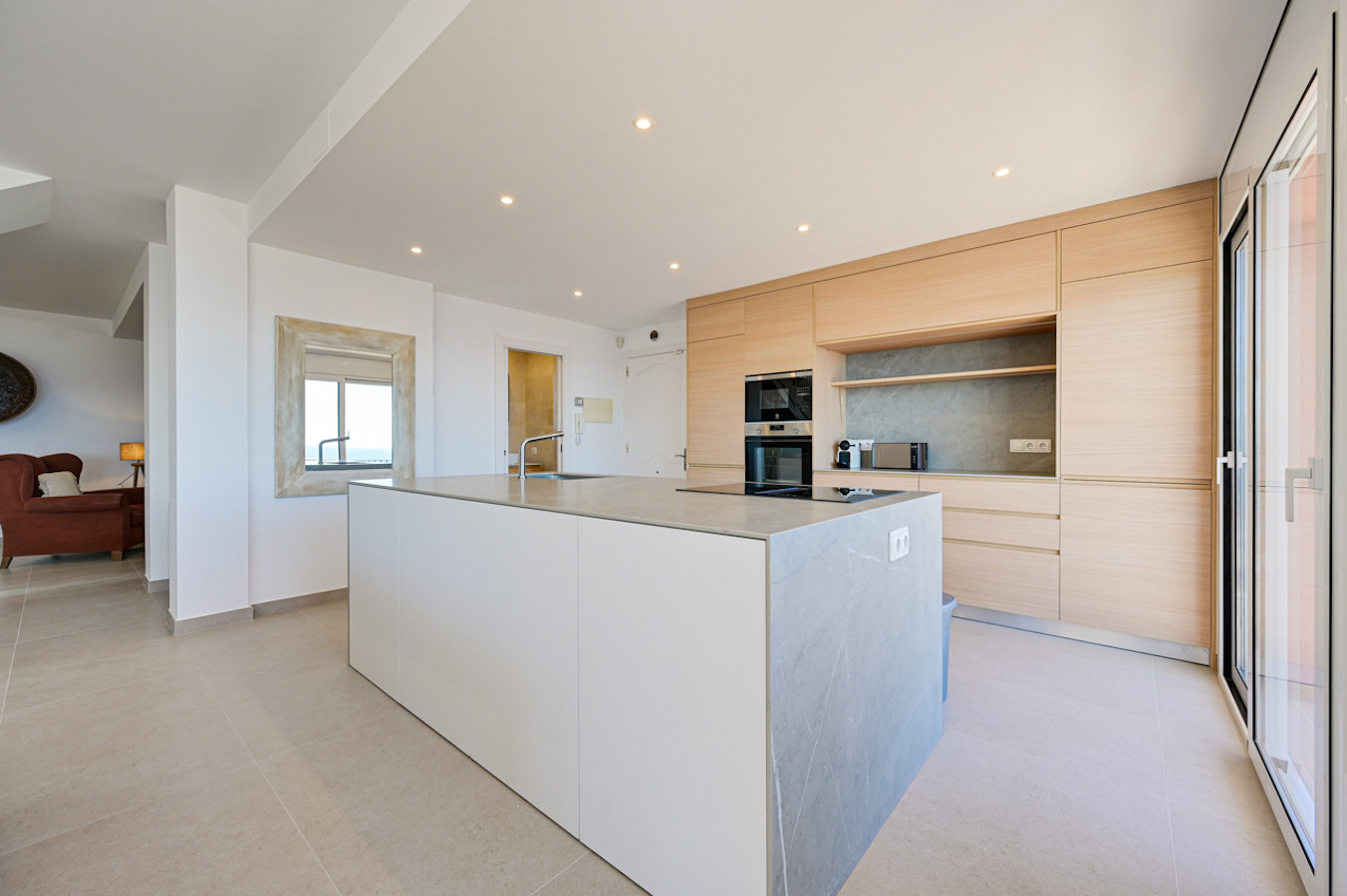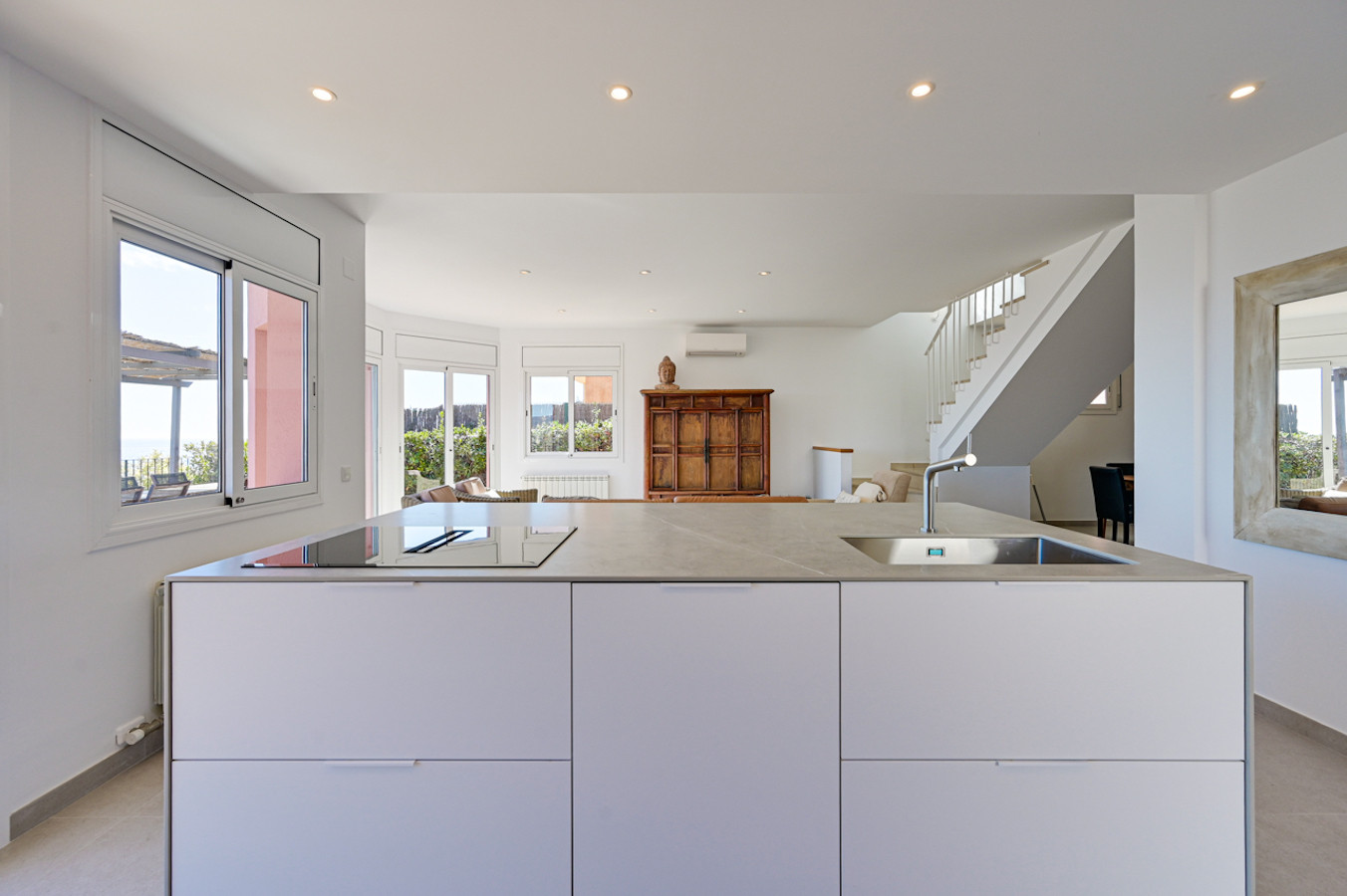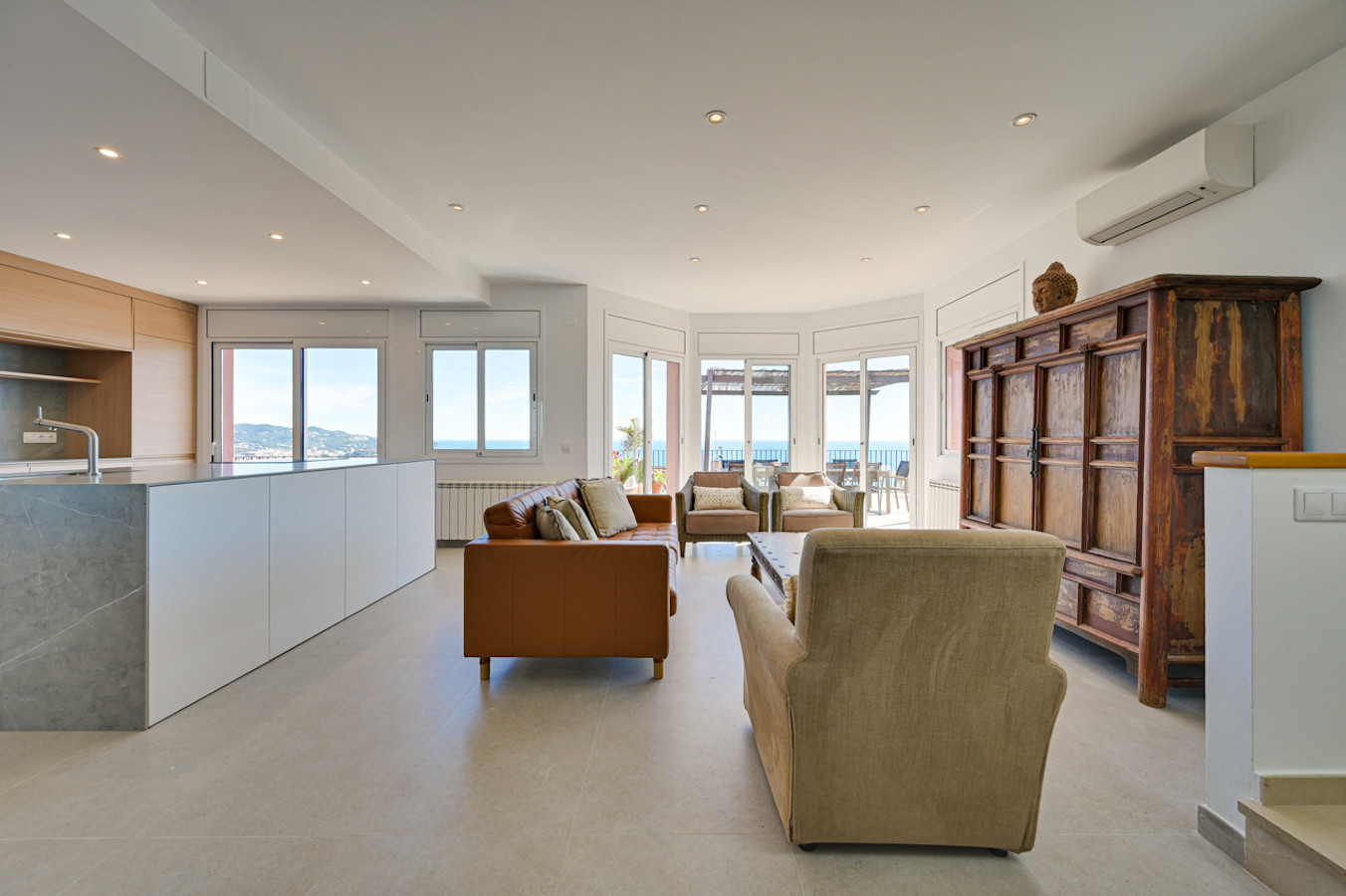 One level up, you’ll find a private pool (7x4 meters) surrounded by sun loungers and a parasol. This area enjoys sunshine all day long, offering the perfect spot to relax while enjoying the panoramic Mediterranean views.