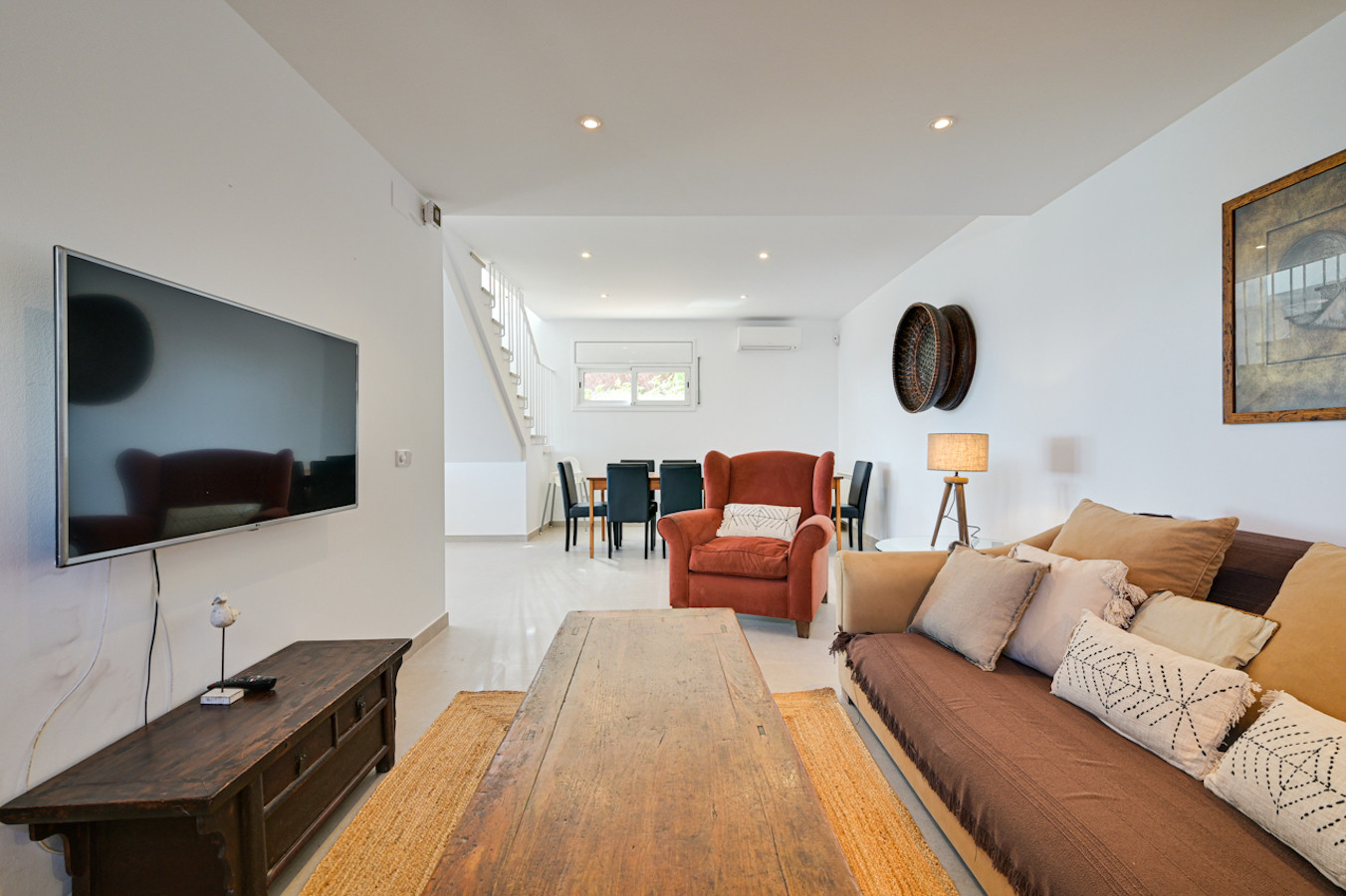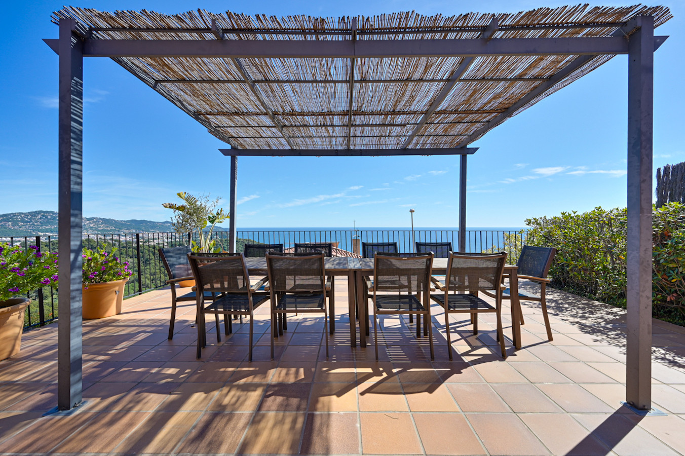 From the living room and kitchen, step outside to the terrace, where you'll find an exterior table under the pergola, BBQ and chill-out corner.