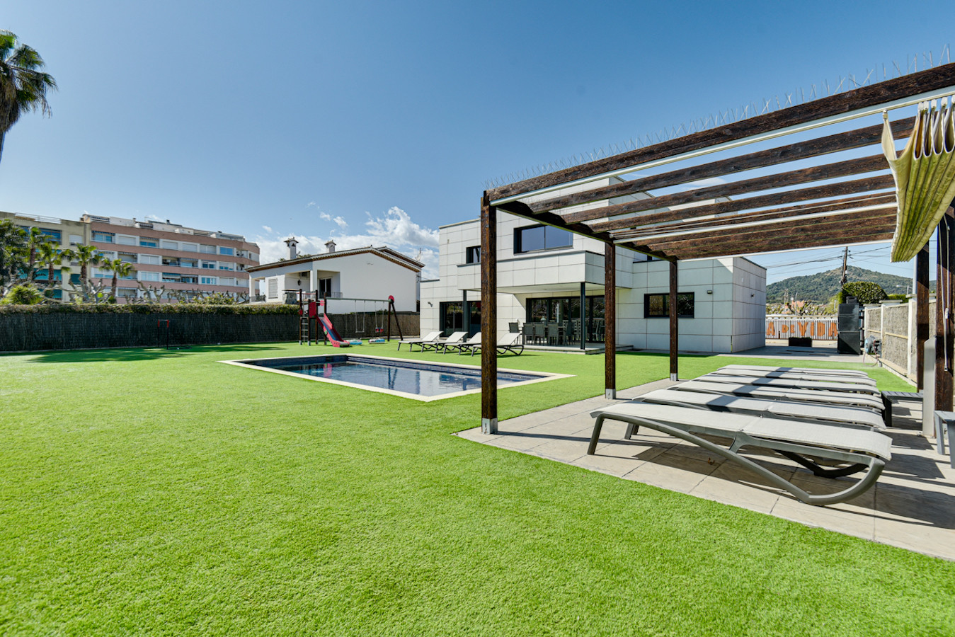 The modern Villa Malibu enjoys an exceptional location in Pineda de Mar, on the Costa Barcelona, within walking distance of the beach, supermarkets, restaurants and the town centre. An ideal villa for families seeking comfort, privacy and a complete holiday experience, without the need to use a car on a daily basis.